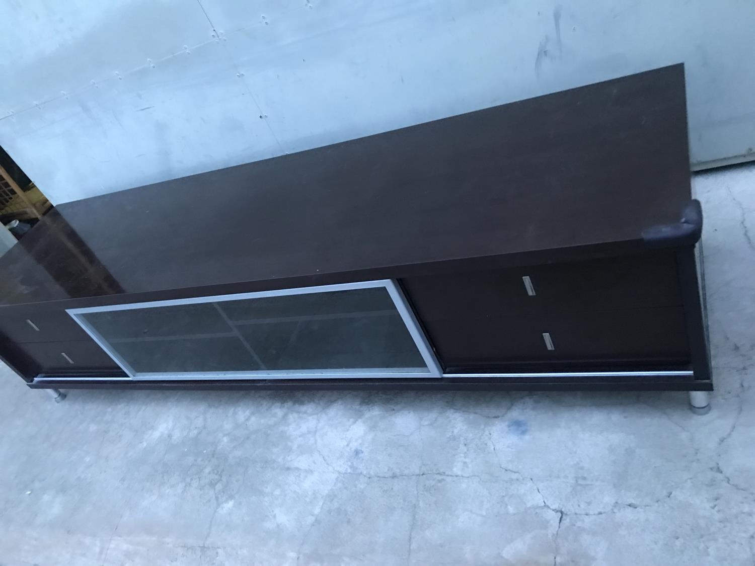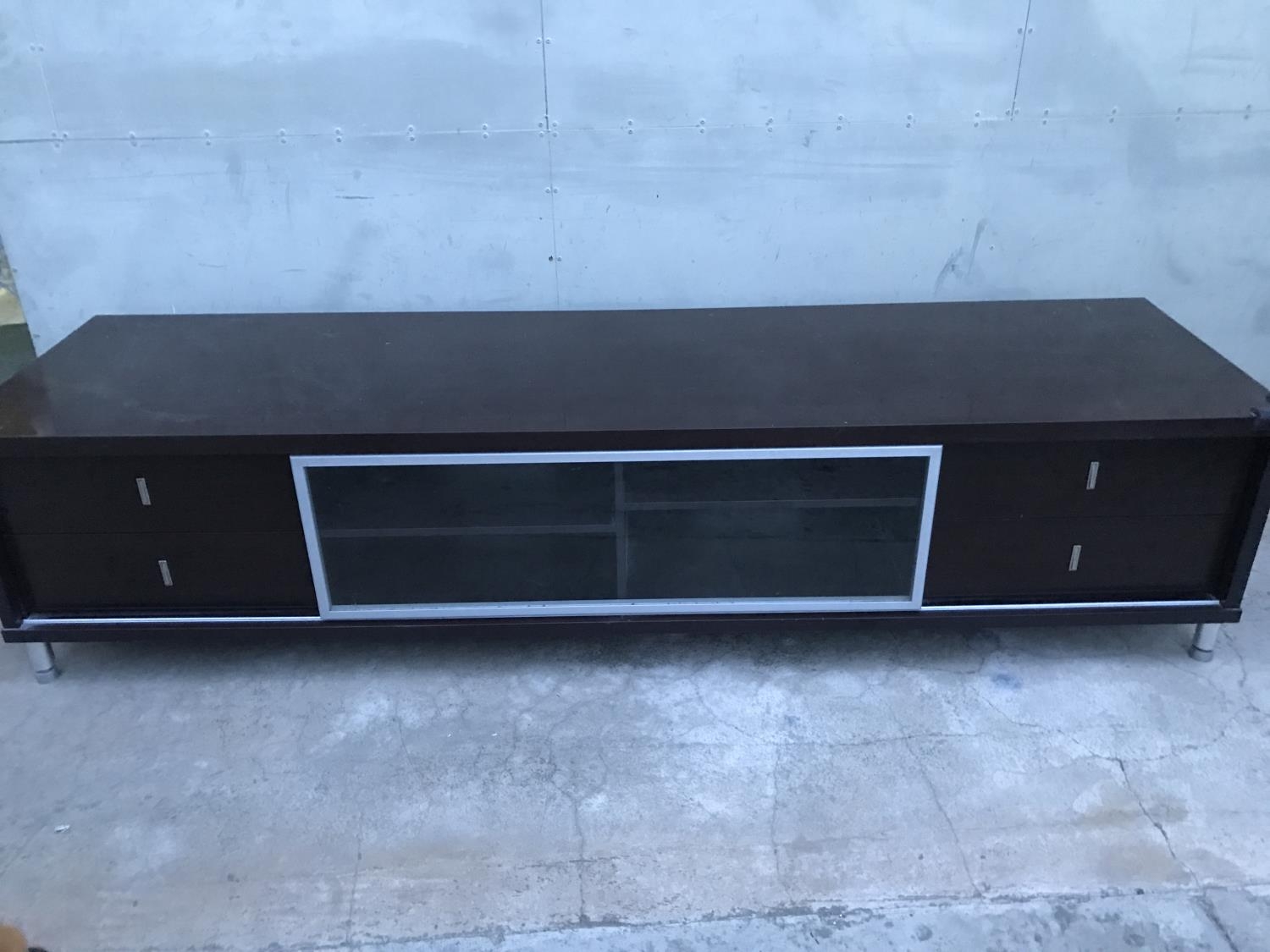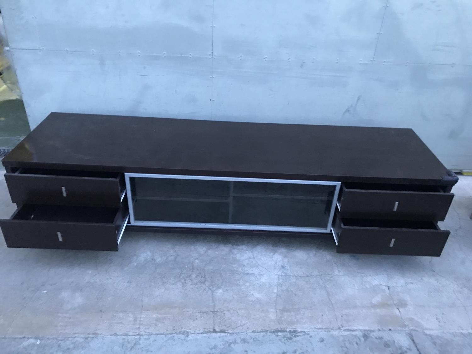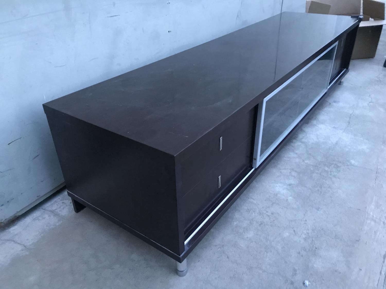 Large Brown TV Cabinet with Sliding Glass Door and 4 Drawers (220 W. x 58 D. x 51cm H.) - Taken Back on 6/2/2024