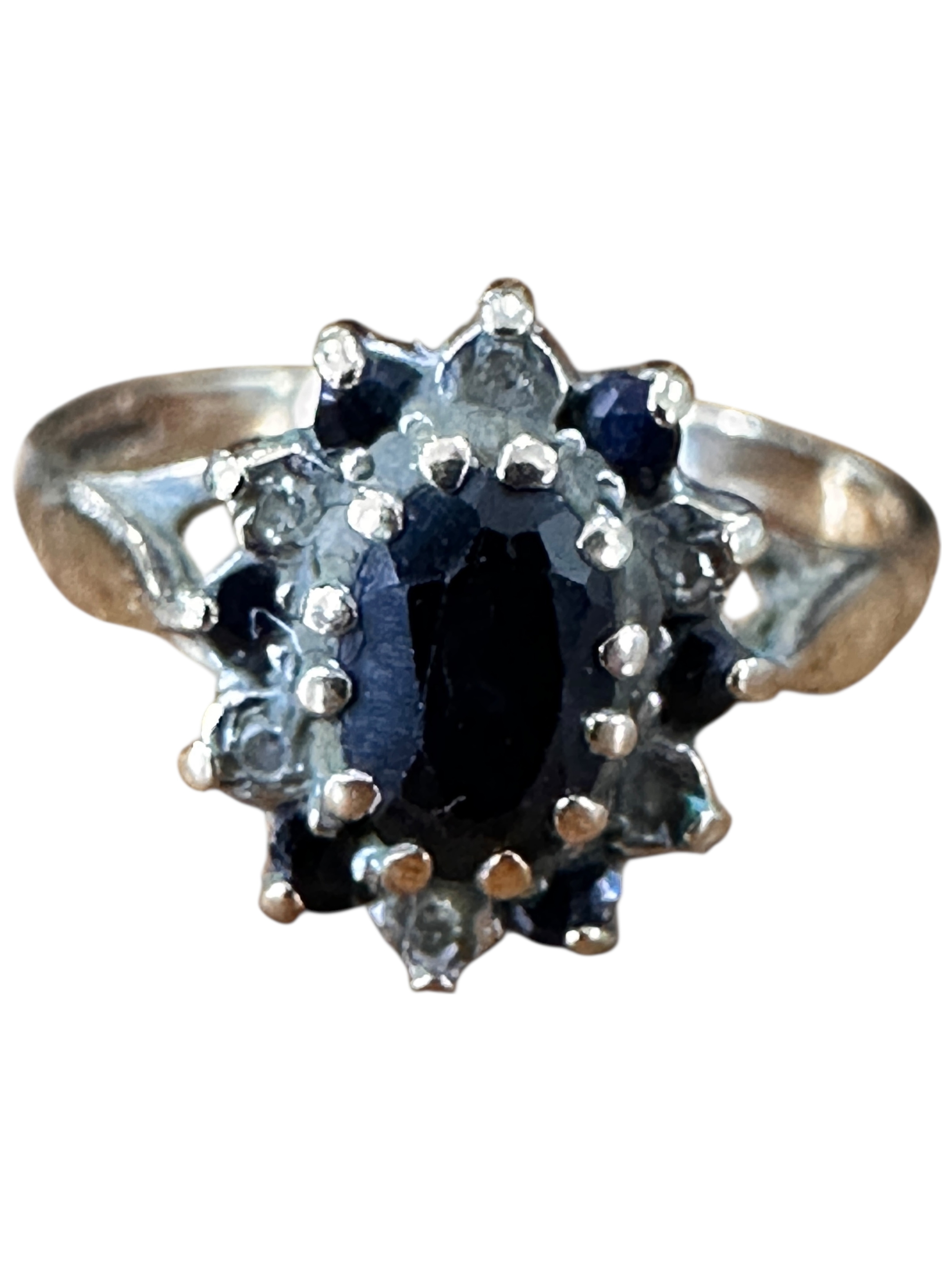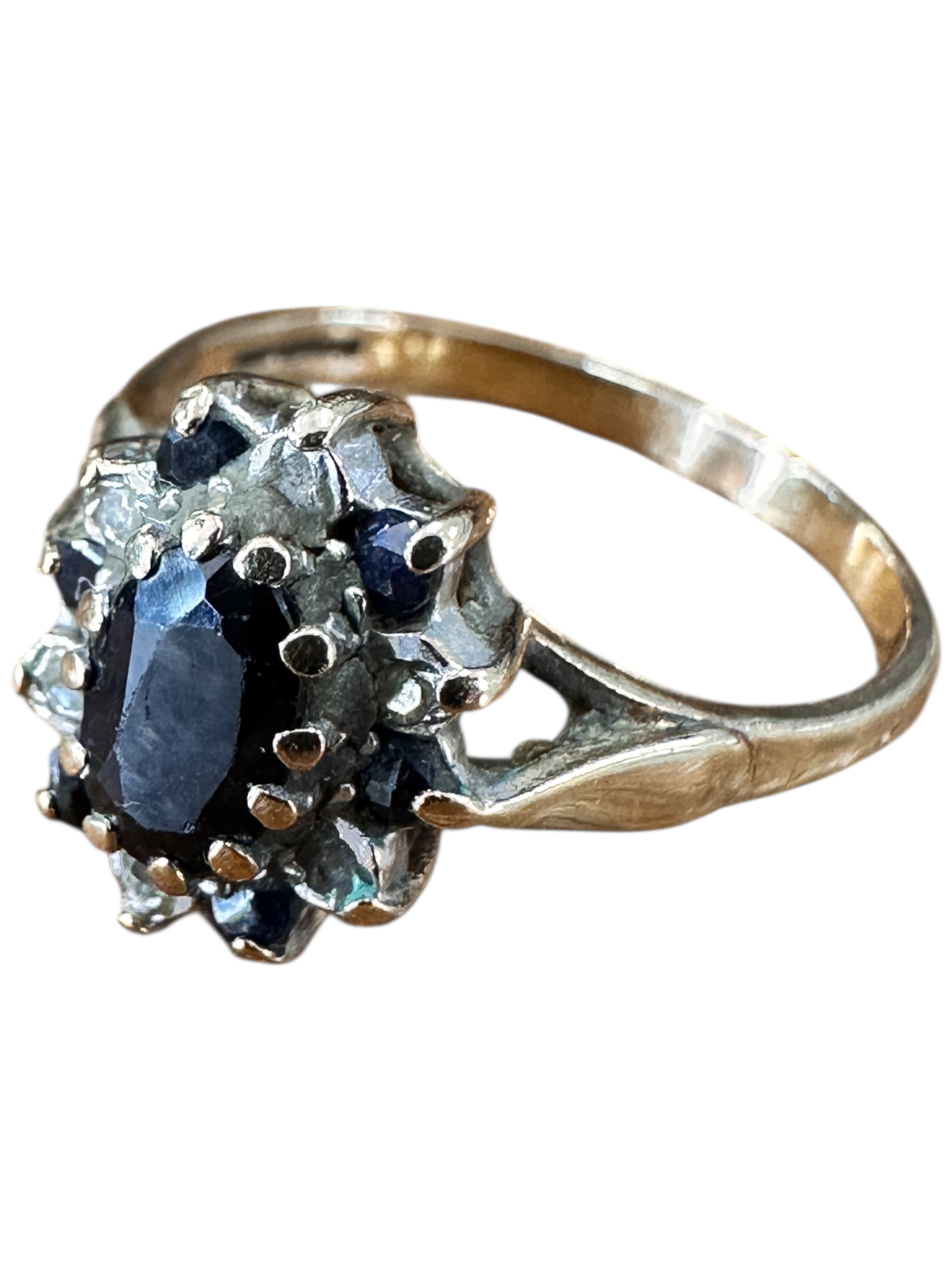 Nine Carat Gold Ring set with Small Diamonds Size K, 1.76g