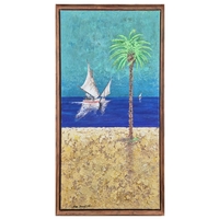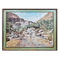 KEN DAVIS. A SPRING IN AMAN. acrylic on board, 73cm x 96cm, framed.