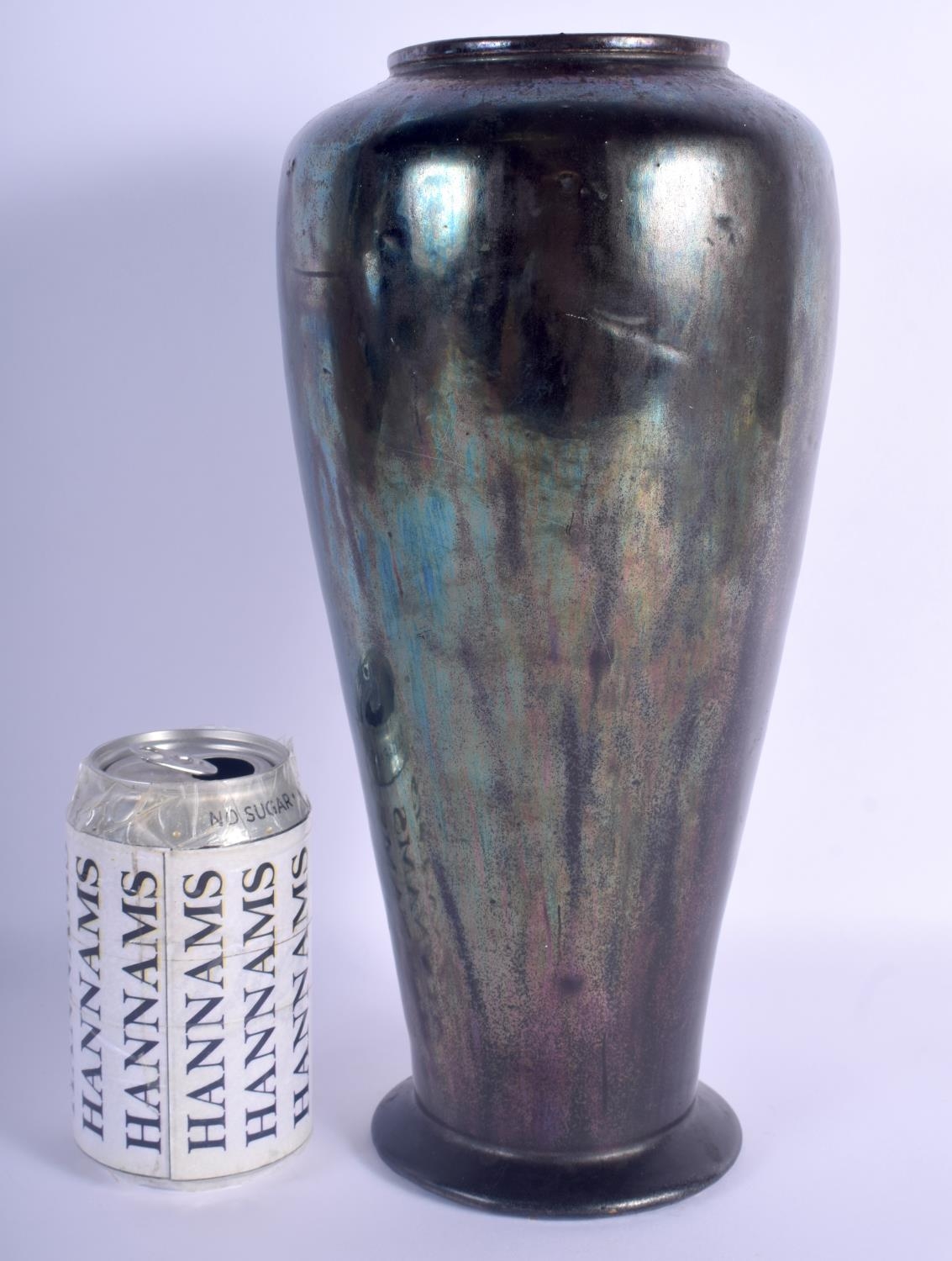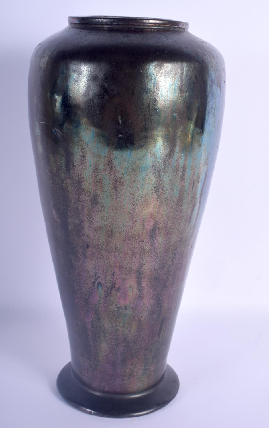 AN UNUSUAL EARLY 20TH CENTURY IRIDESCENT FAVRILLE TYPE POTTERY VASE in the manner of Tiffany & Co. 30.5 cm high.