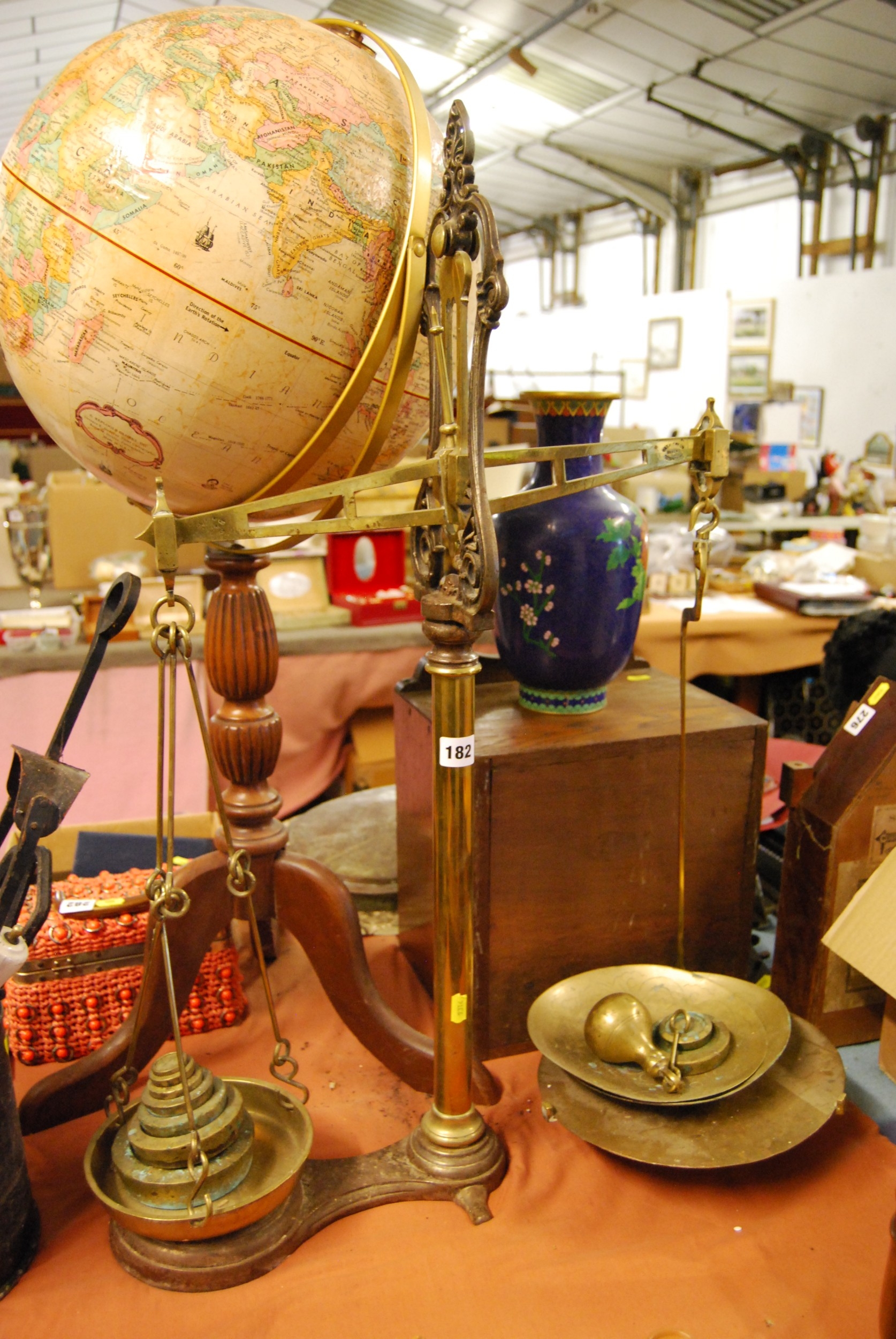 LARGE 19TH CENTURY SET OF BRASS BEAM SCALES & WEIGHTS (82CM)