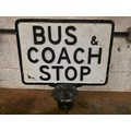 A vintage cast iron double sided Bus & Coach Stop post top, 44 x 44cm.