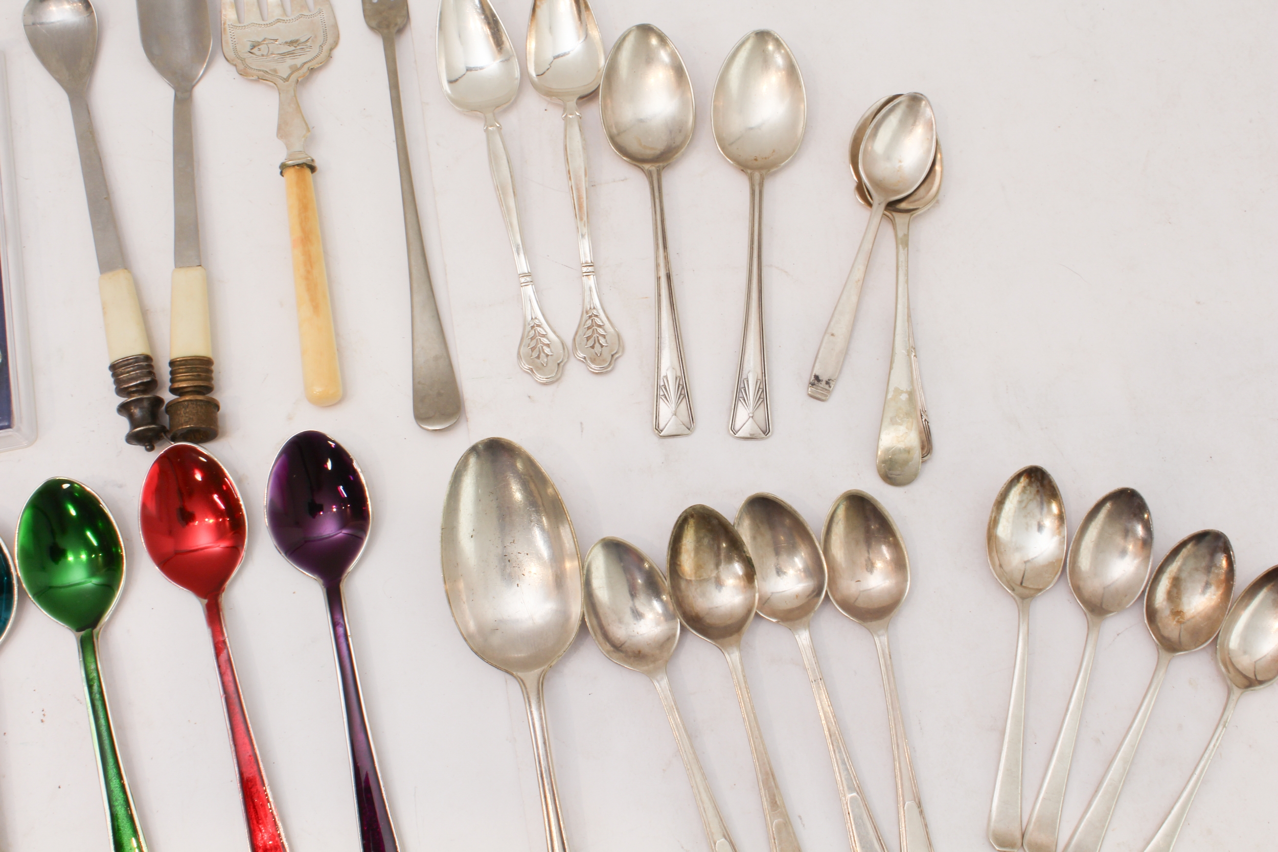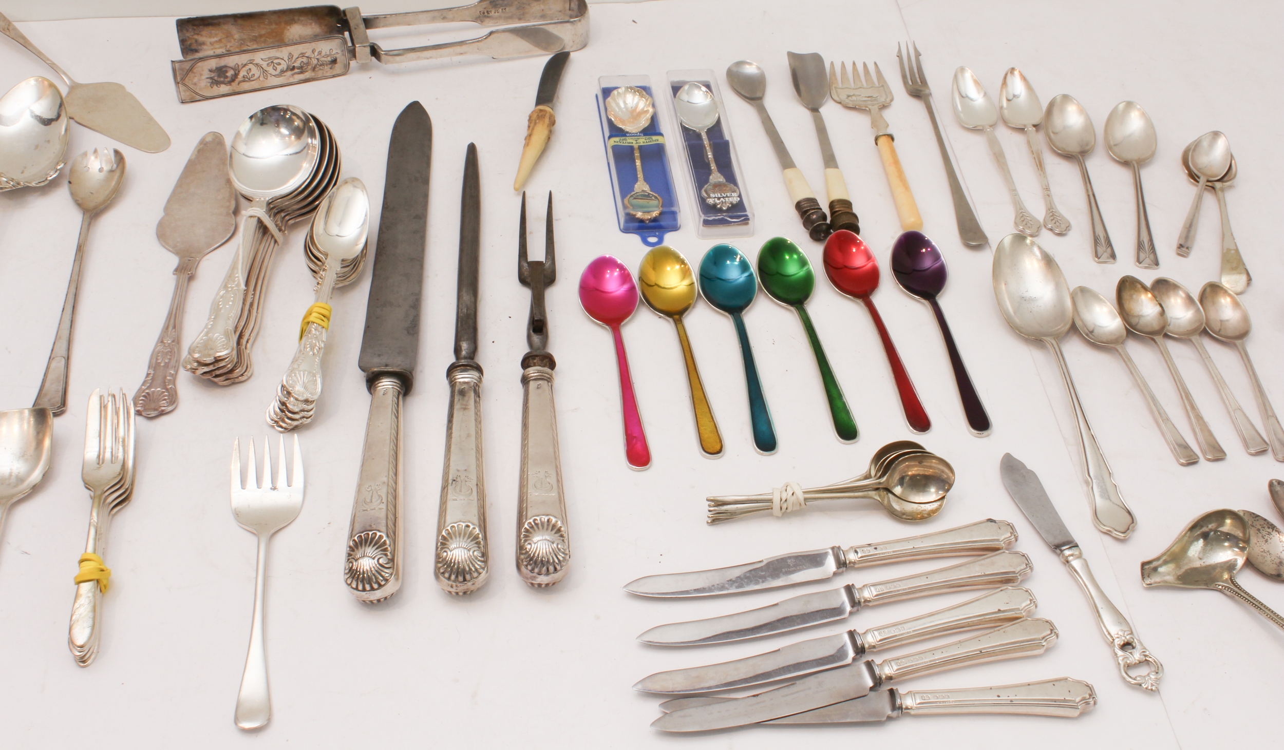 An assortment of mostly late 19th to early 20th century silver-plated flatware and cutlery to include: