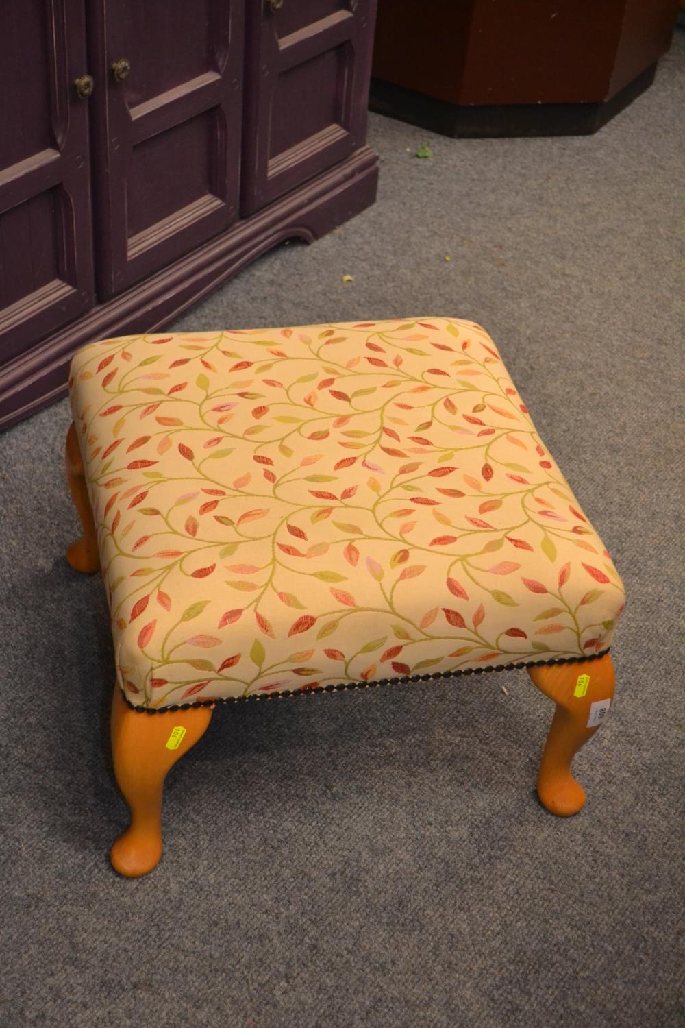 Upholstered footstool from Stuart Jones. 48cm x 48xm x h32cm