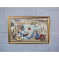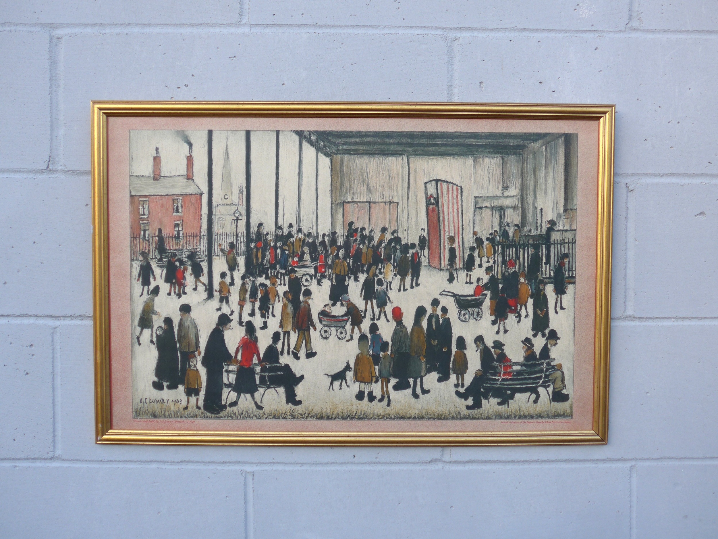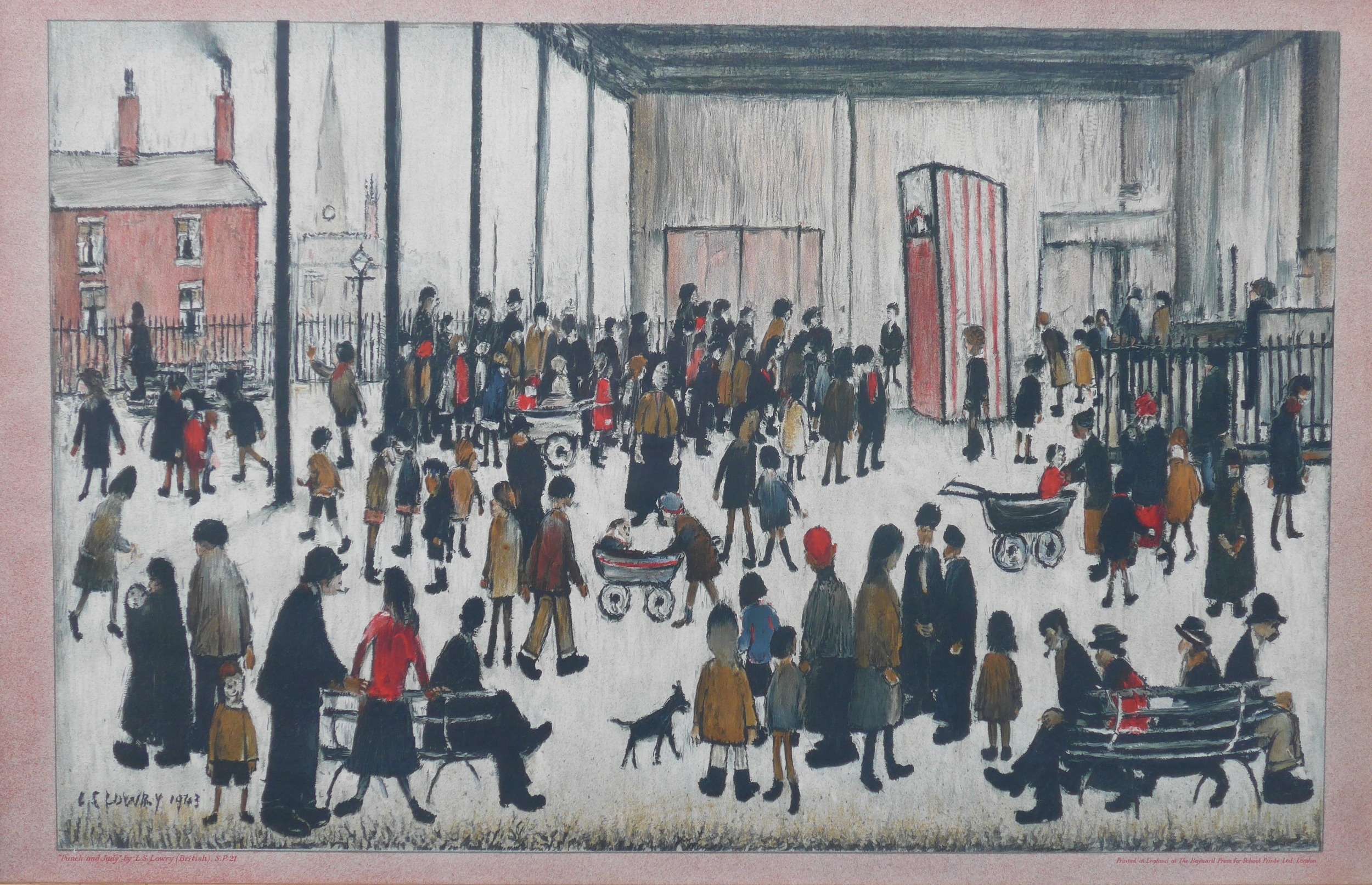 L.S Lowry, Baynard Press for School Prints Ltd - 'Punch & Judy'. Image size 48.5cm x 75cm. Framed and glazed.