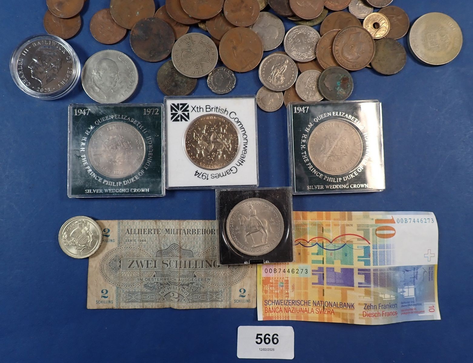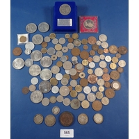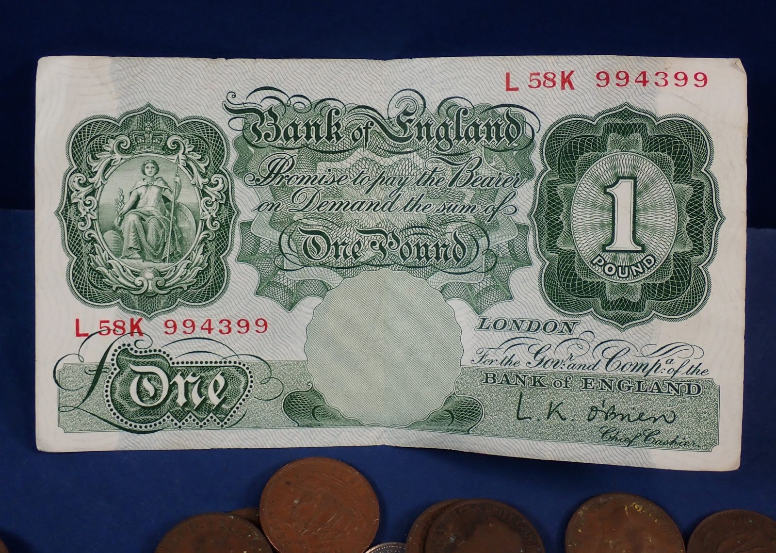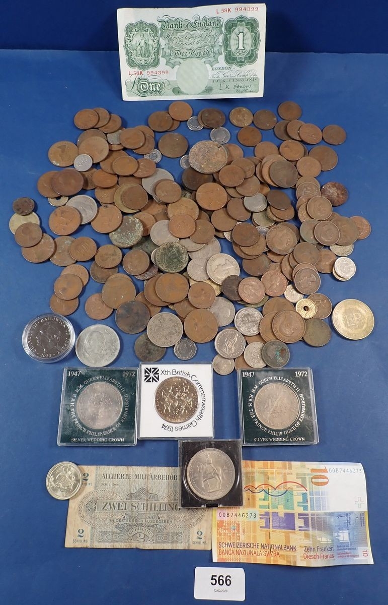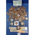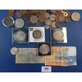 A collection of mostly British coins including George III farthing, commemorative crowns etc plus a Bank of England one pound not L K O'Brien etc