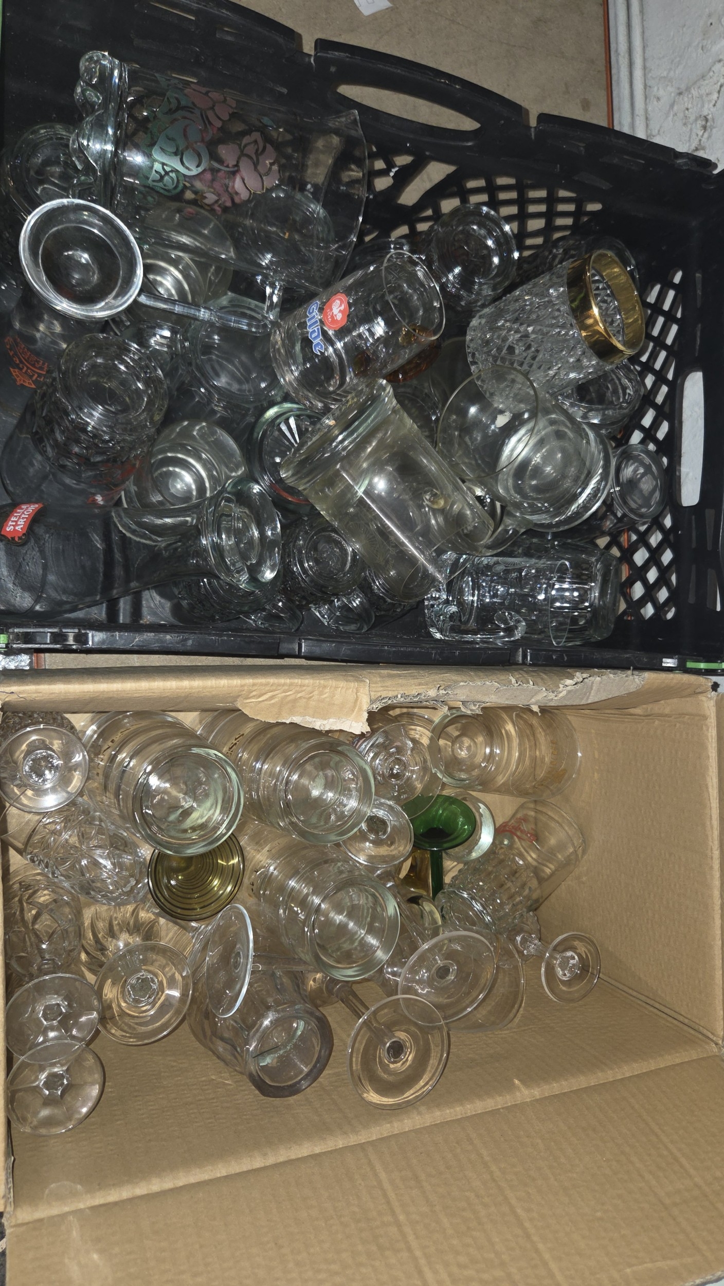 A Collection of Assorted Branded and Clear Glassware