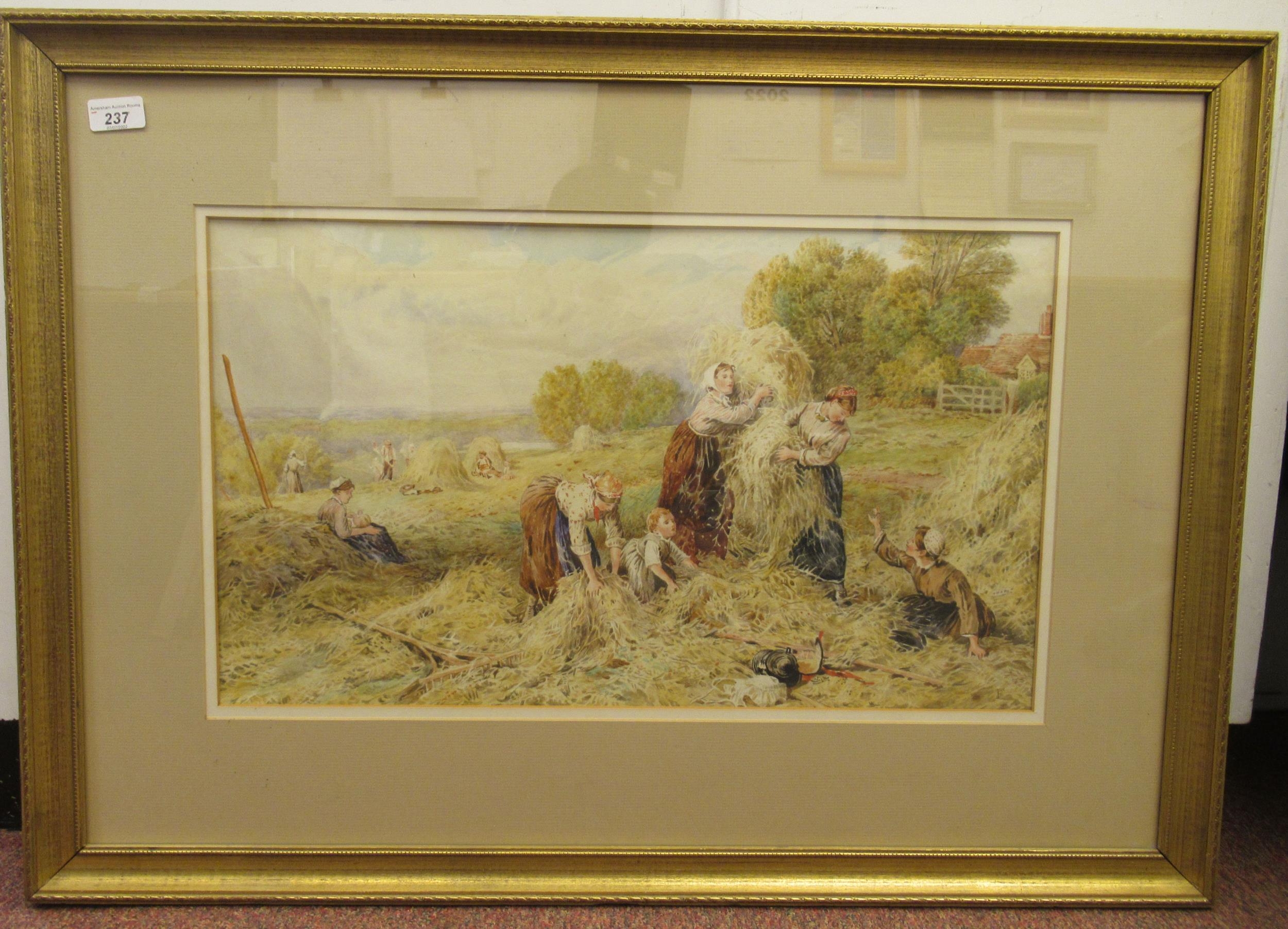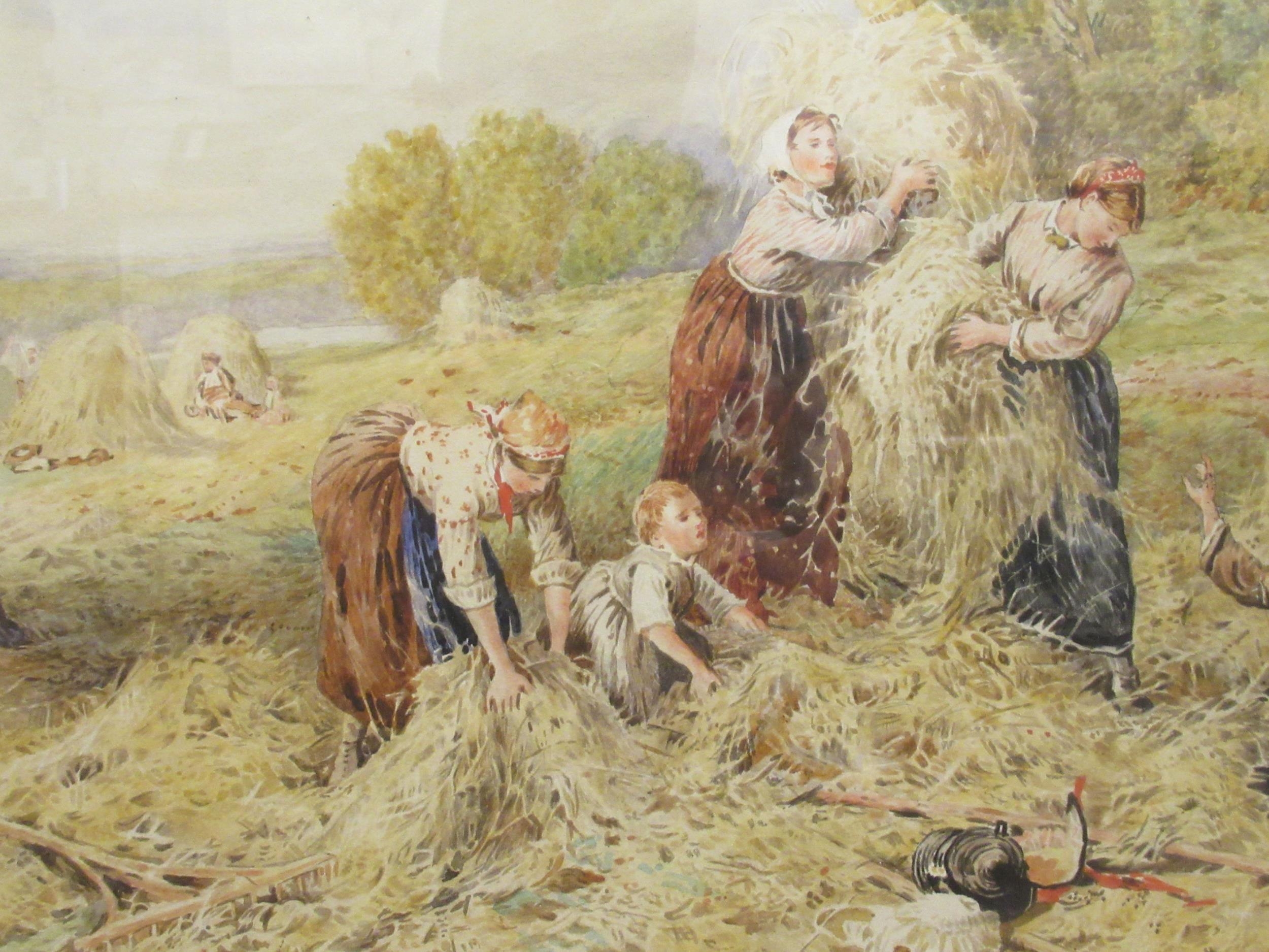 Early 20thC British School - haymaking with women and children in the foreground watercolour bears the monogram FB 15.5" x 23.5" framed