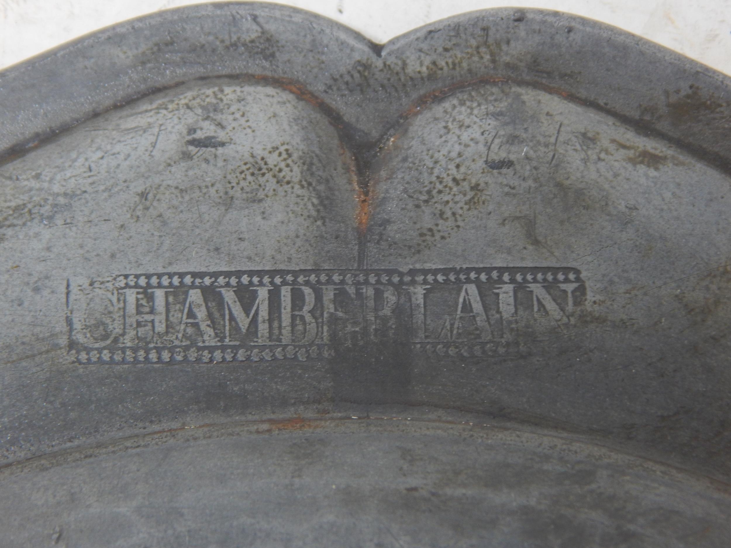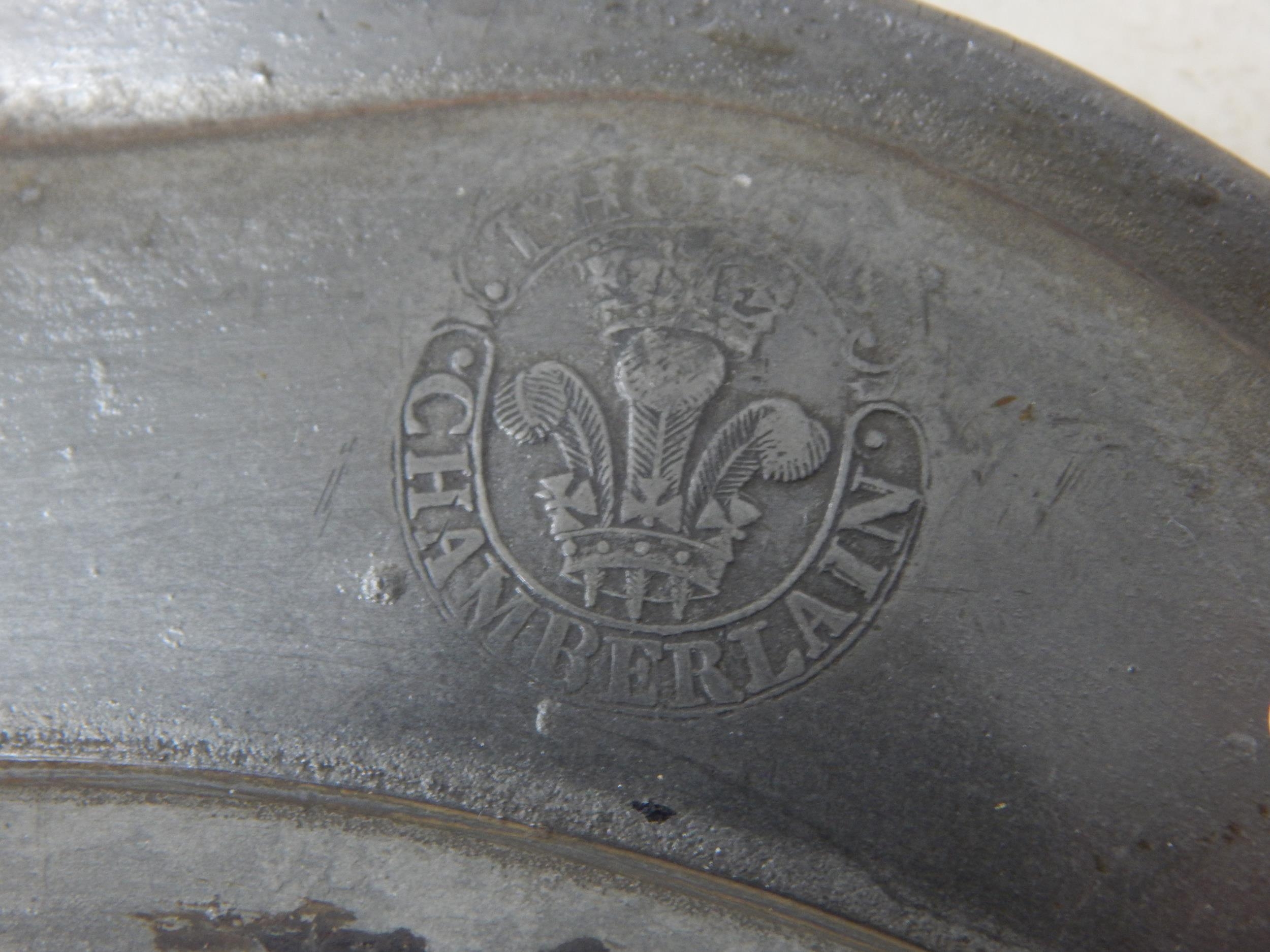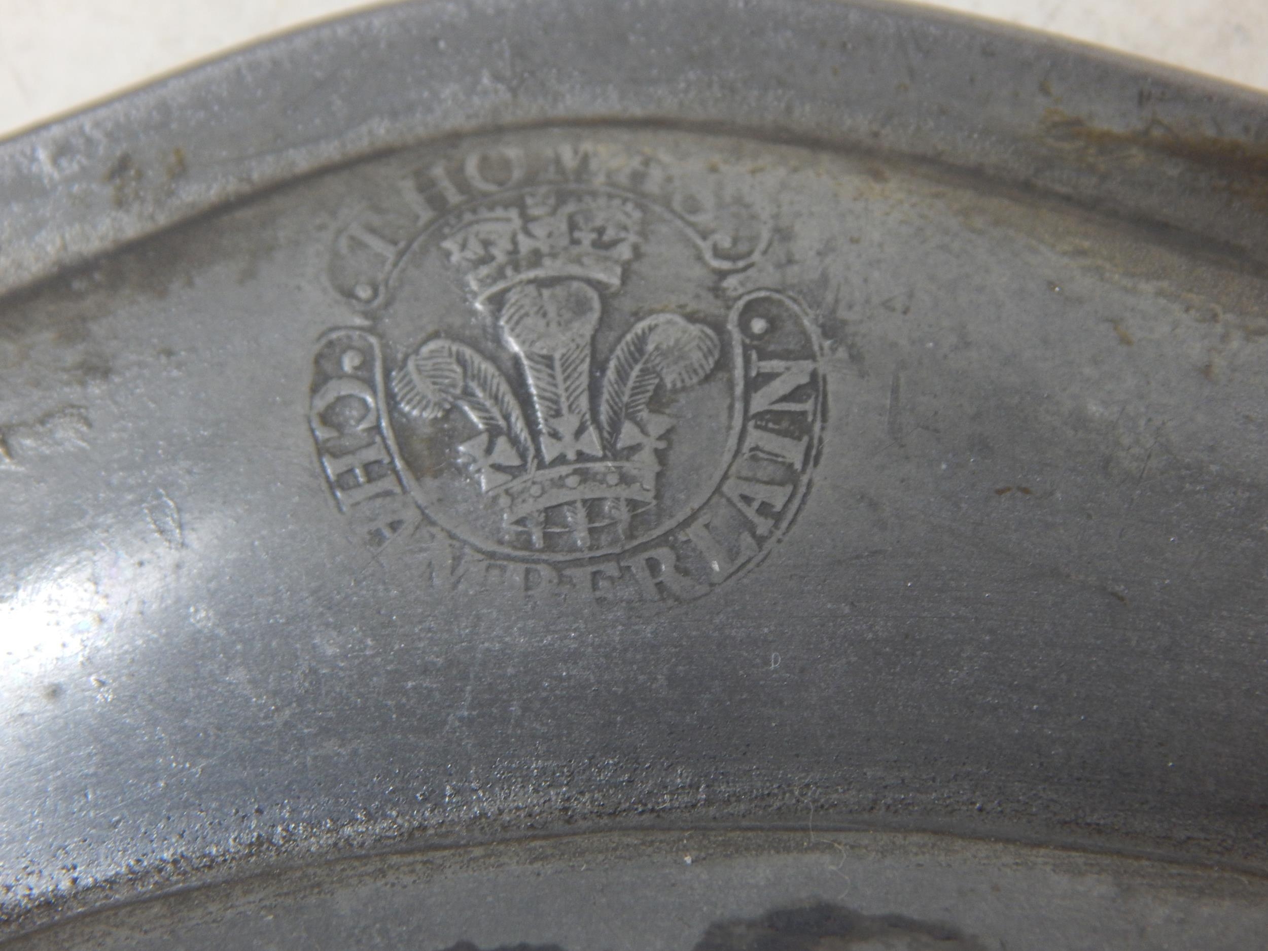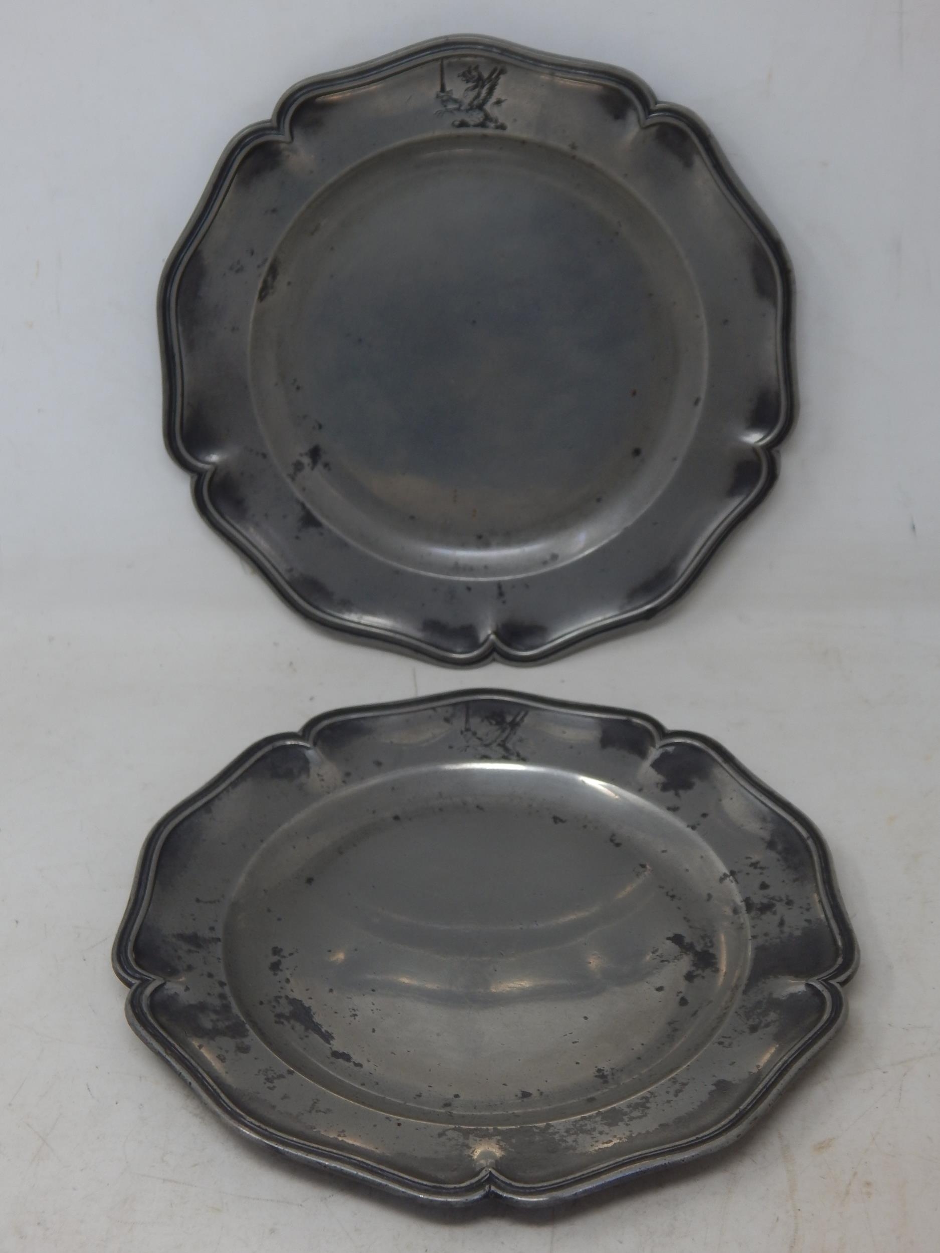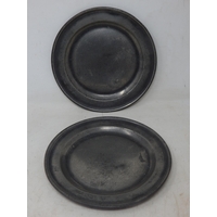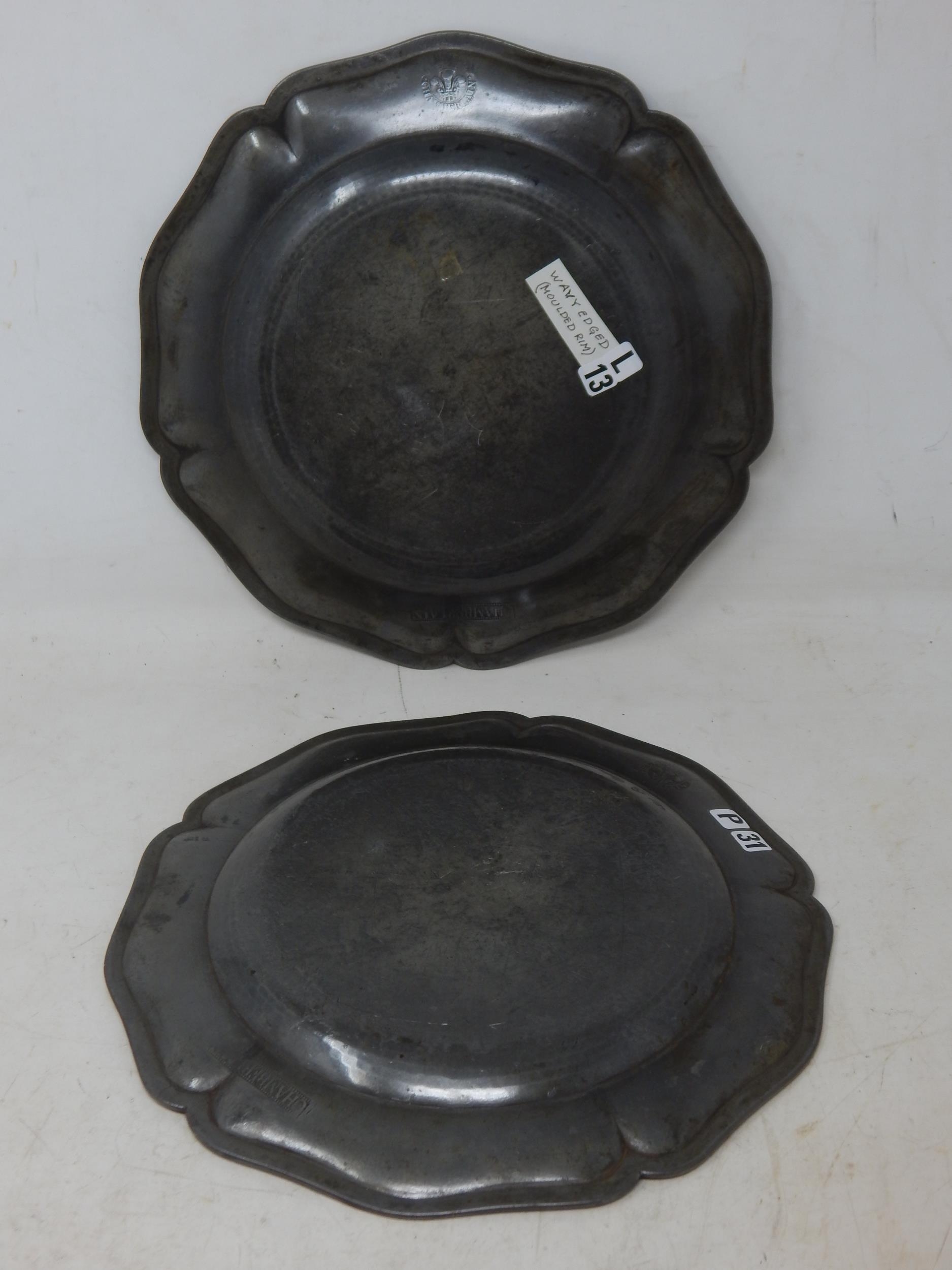 A Pair of 18th Century Pewter Wavy Edge Plates c.1750 by Thomas Chamberlain: Diameter 24.5cm