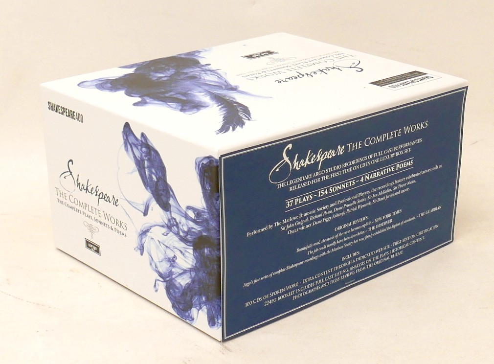 Shakespeare: The Complete Works, 100 CD box set of the complete plays, sonnets and poems by William Shakespeare.