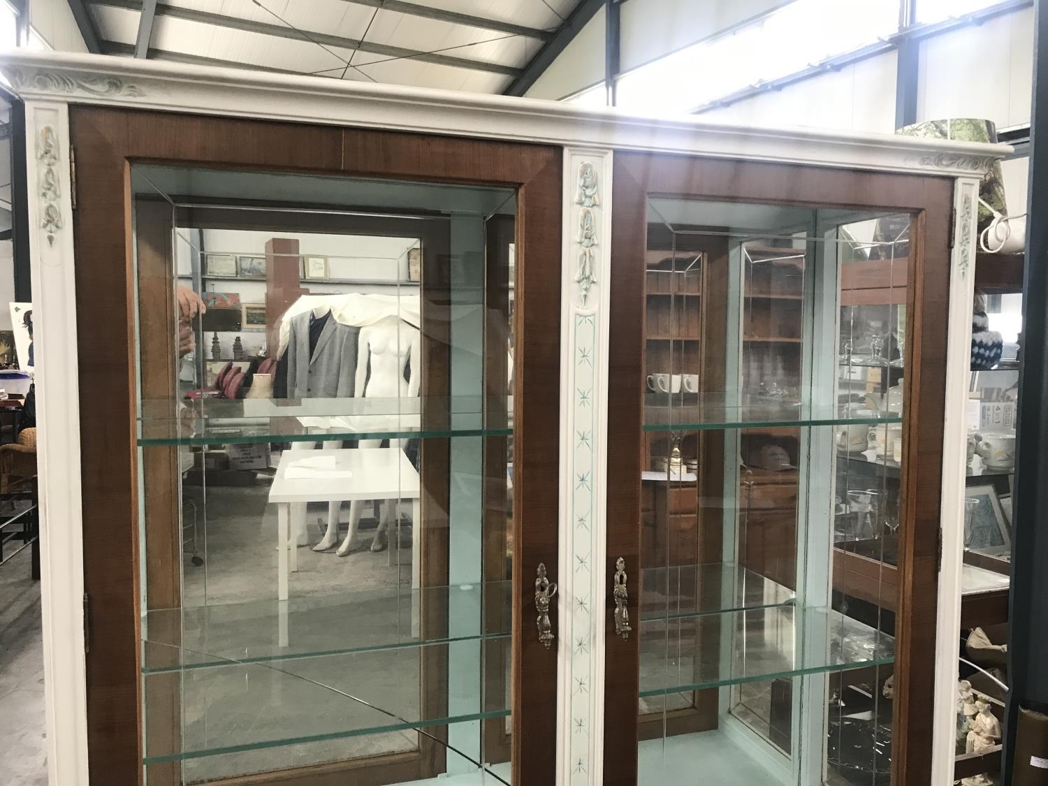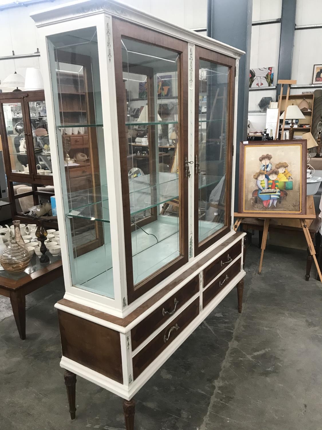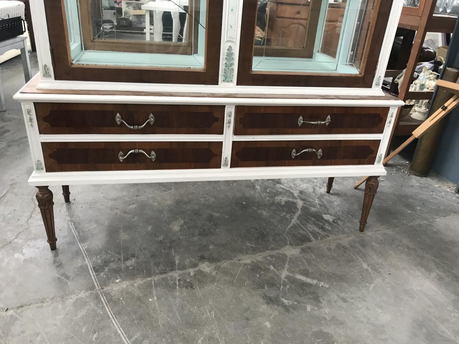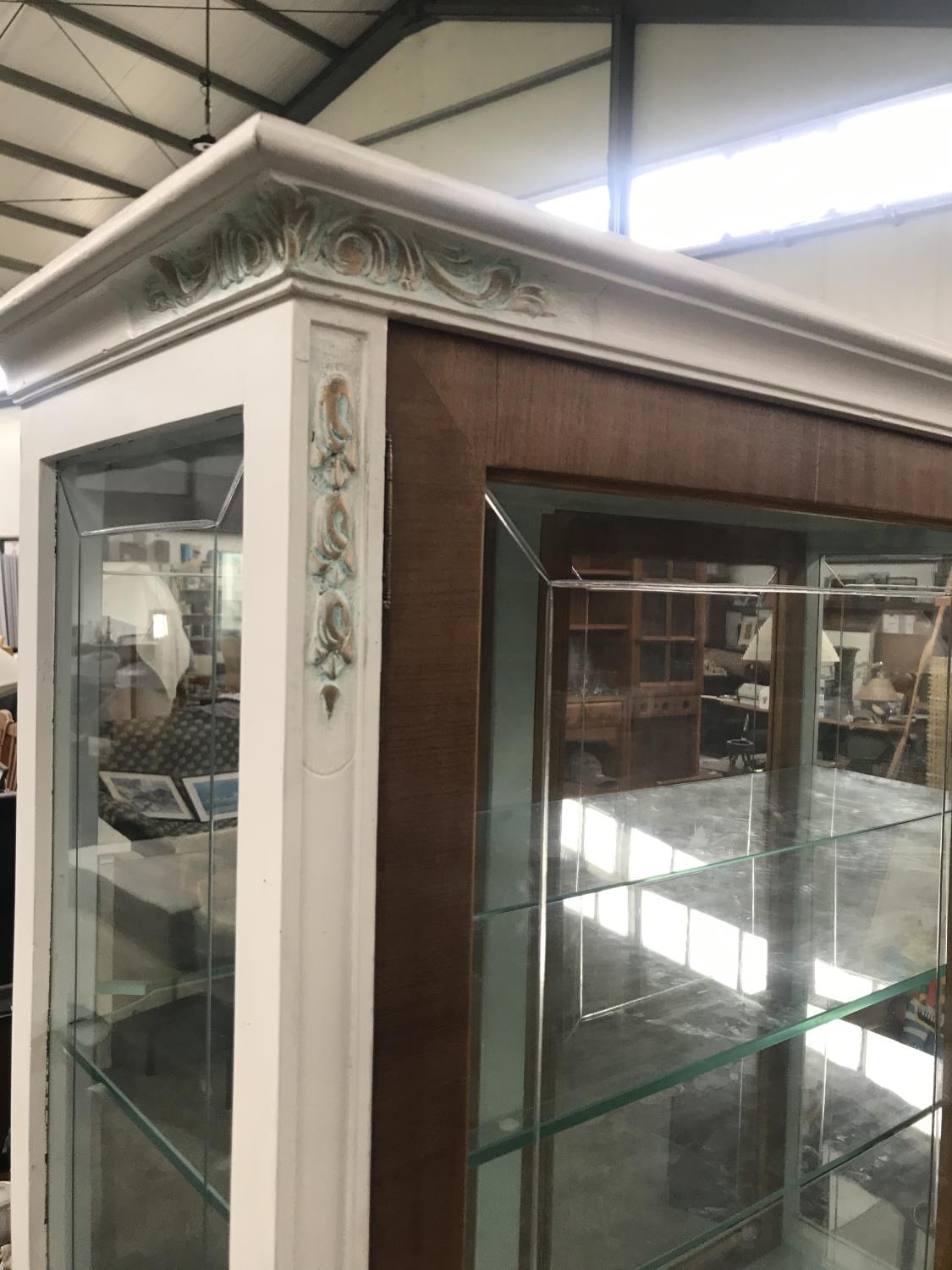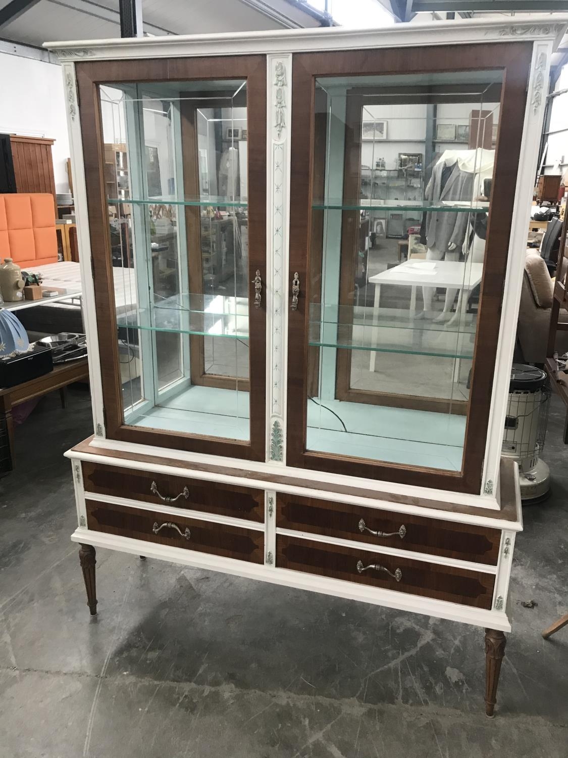 Vintage Ornate Back-Mirrored Vitrine/Display Cabinet with 4 Bottom Drawers (175 H. x 135 W. x 40cm D.) (Mirror Inside the Vitrine Cracked)