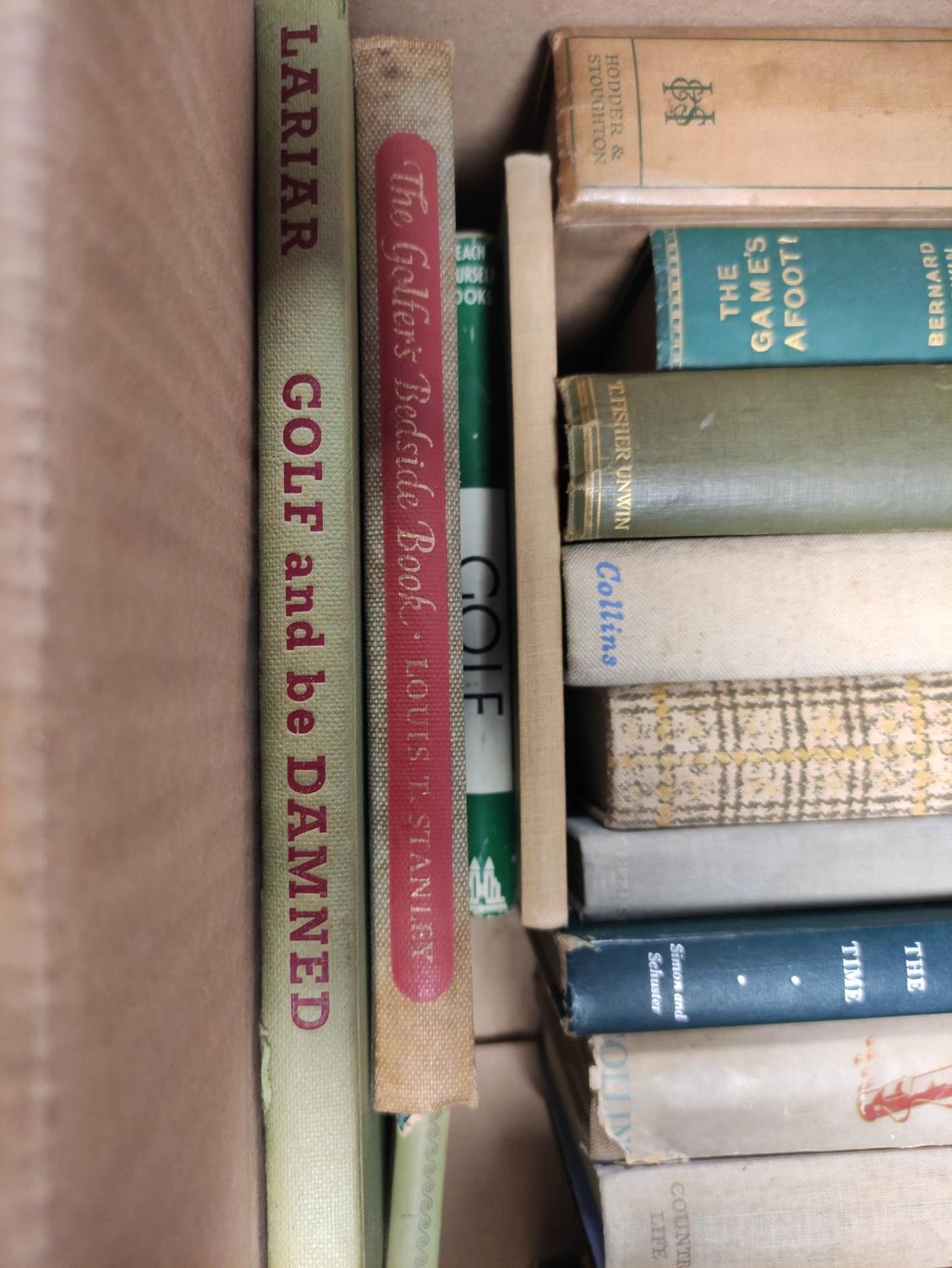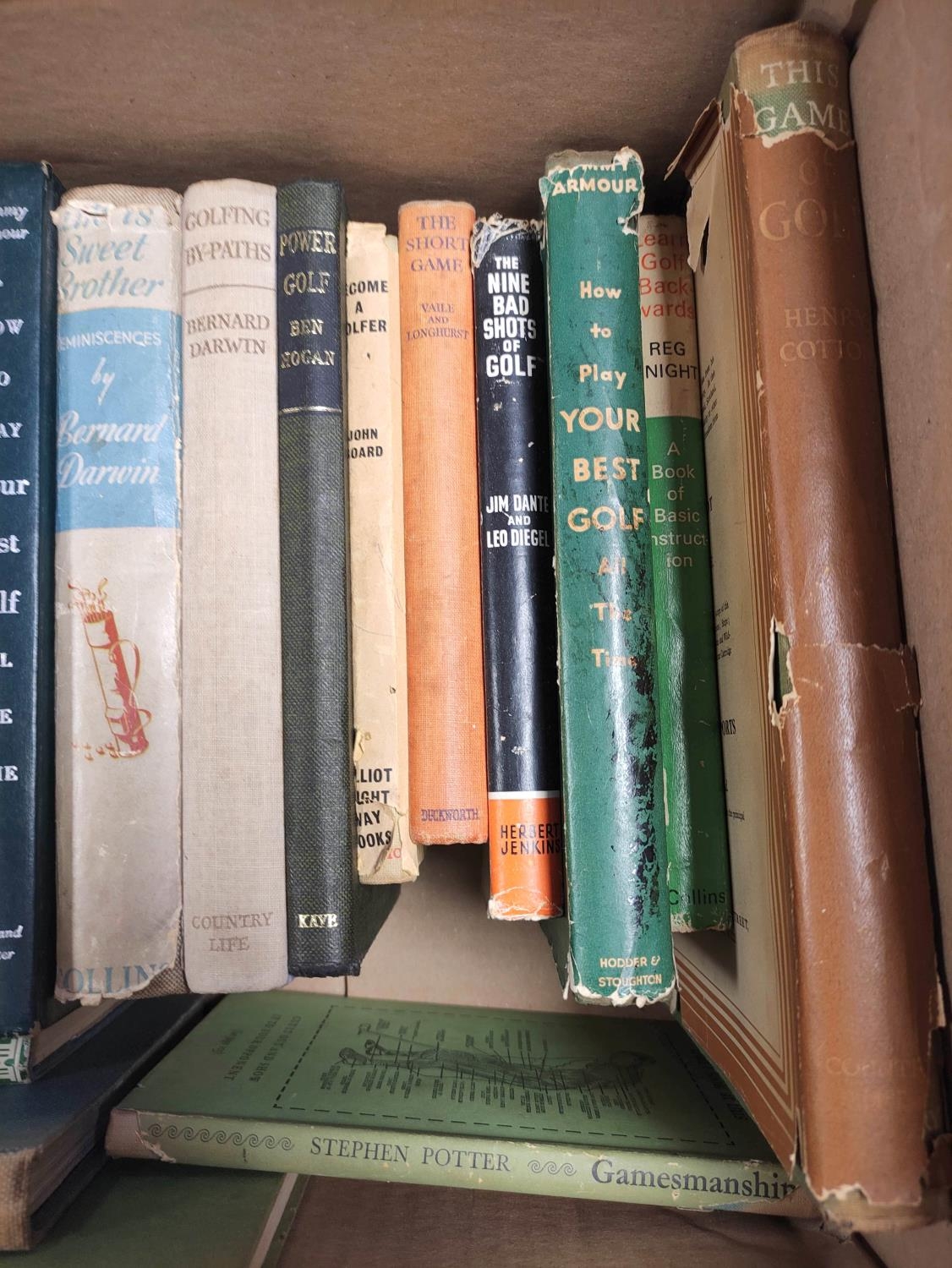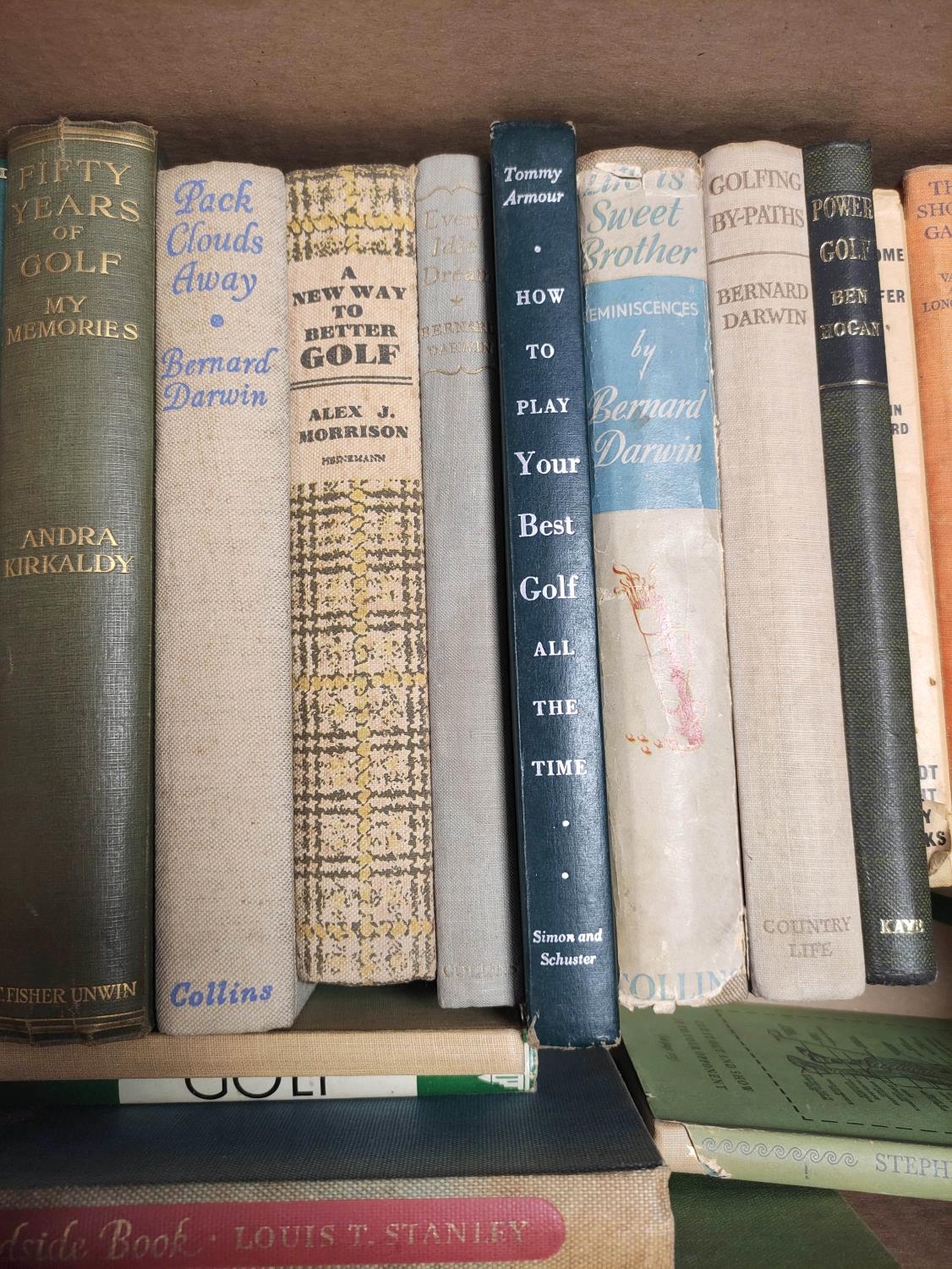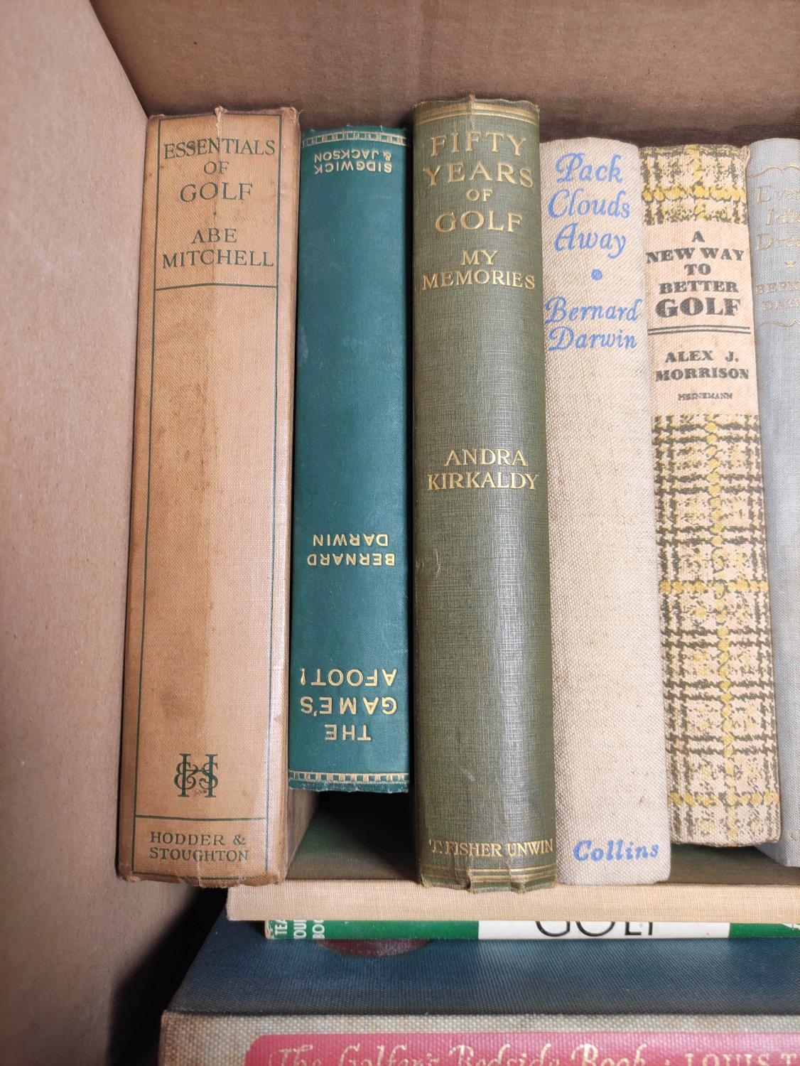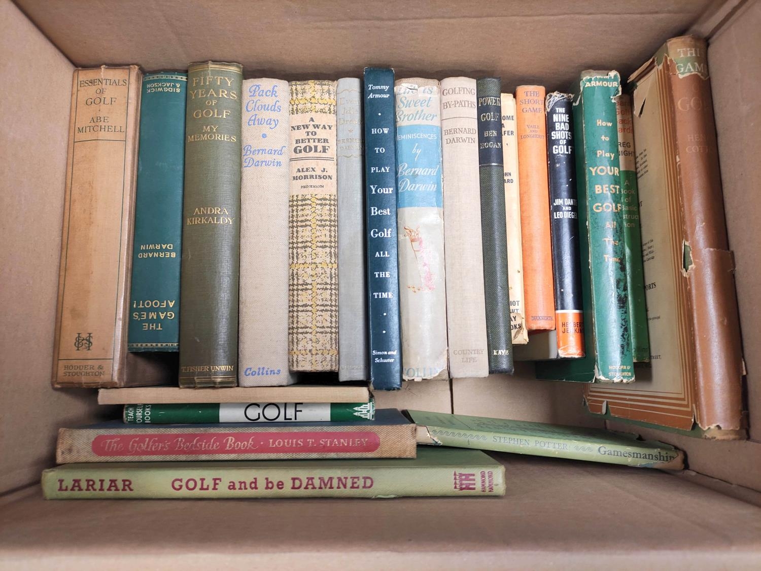 Golf. Box containing a quantity of early 20th century golf books to include Bernard Darwin The Game's Afoot first ed 1926, A. Kirkaldy Fifty Years of Golf first ed 1921, A. Mitchell Essentials of Golf among others.