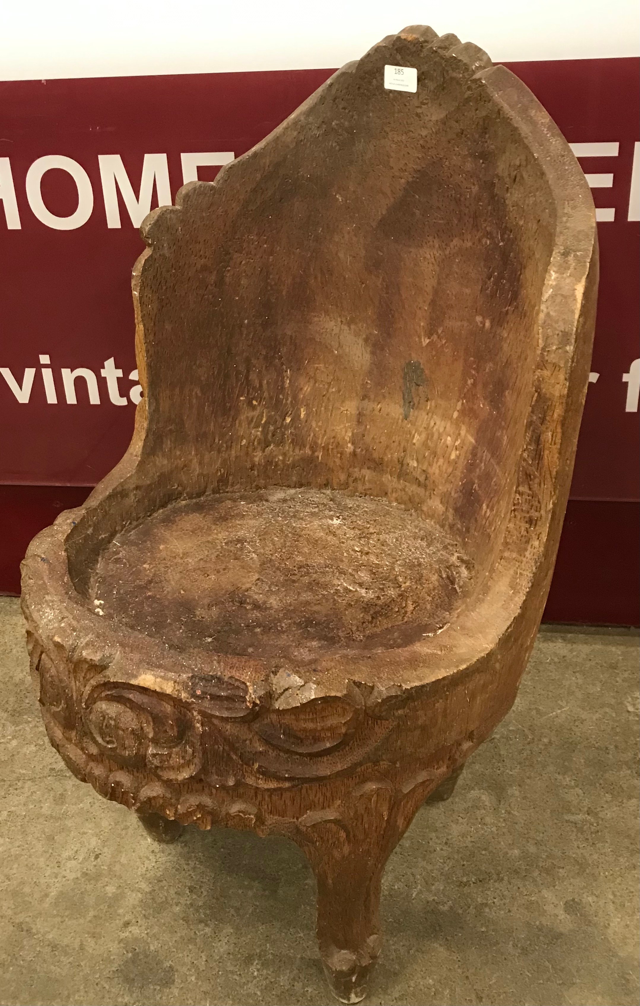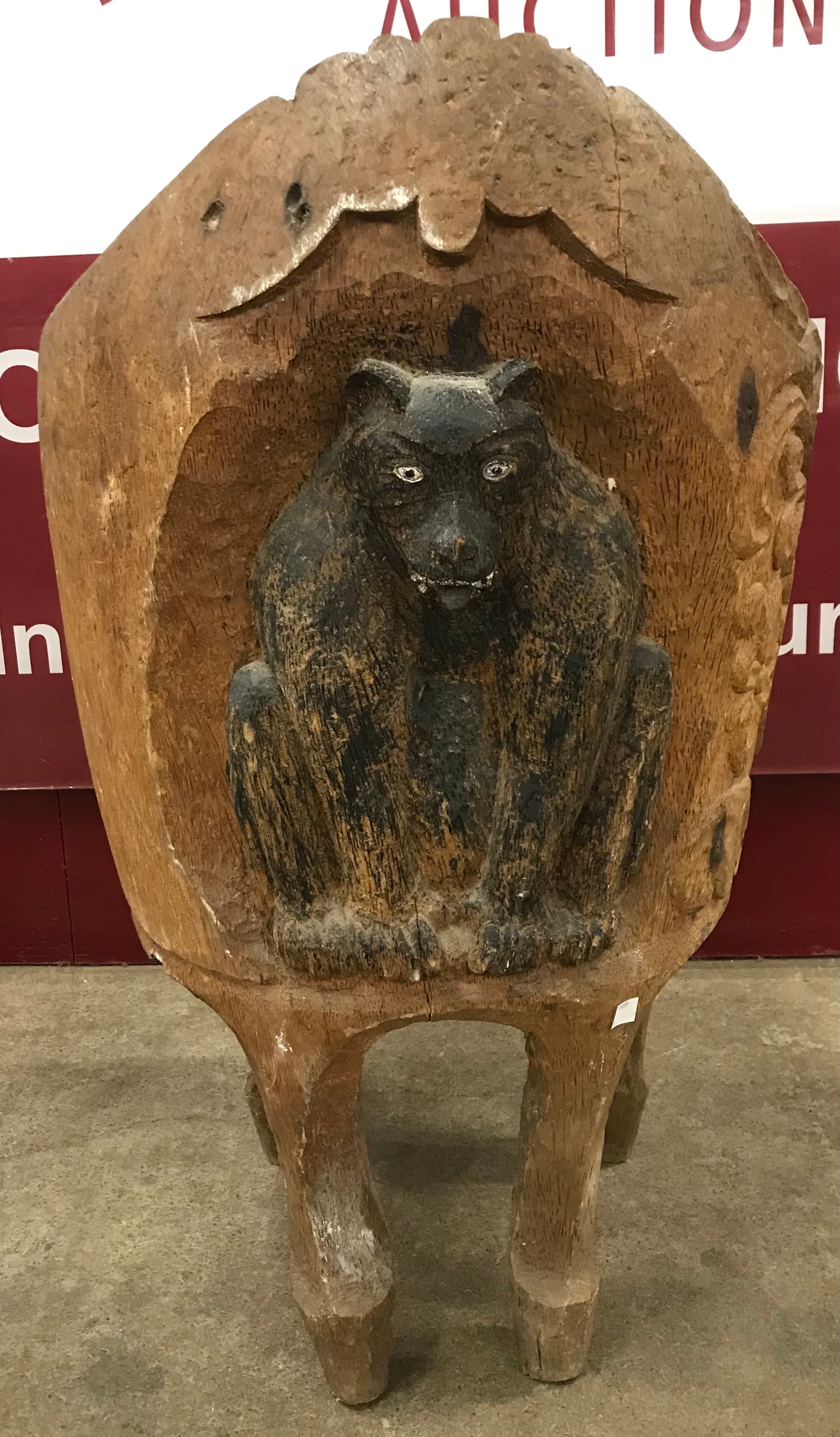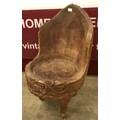 An Anglo-Indian carved oak tub chair, depicting a mythical beast to back