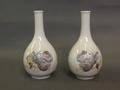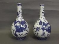 A pair of small Chinese bottle vases decorated with a resting man to one side and calligraphy to the other, printed mark to base, 5½' high