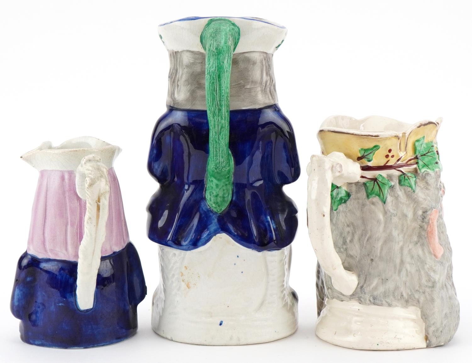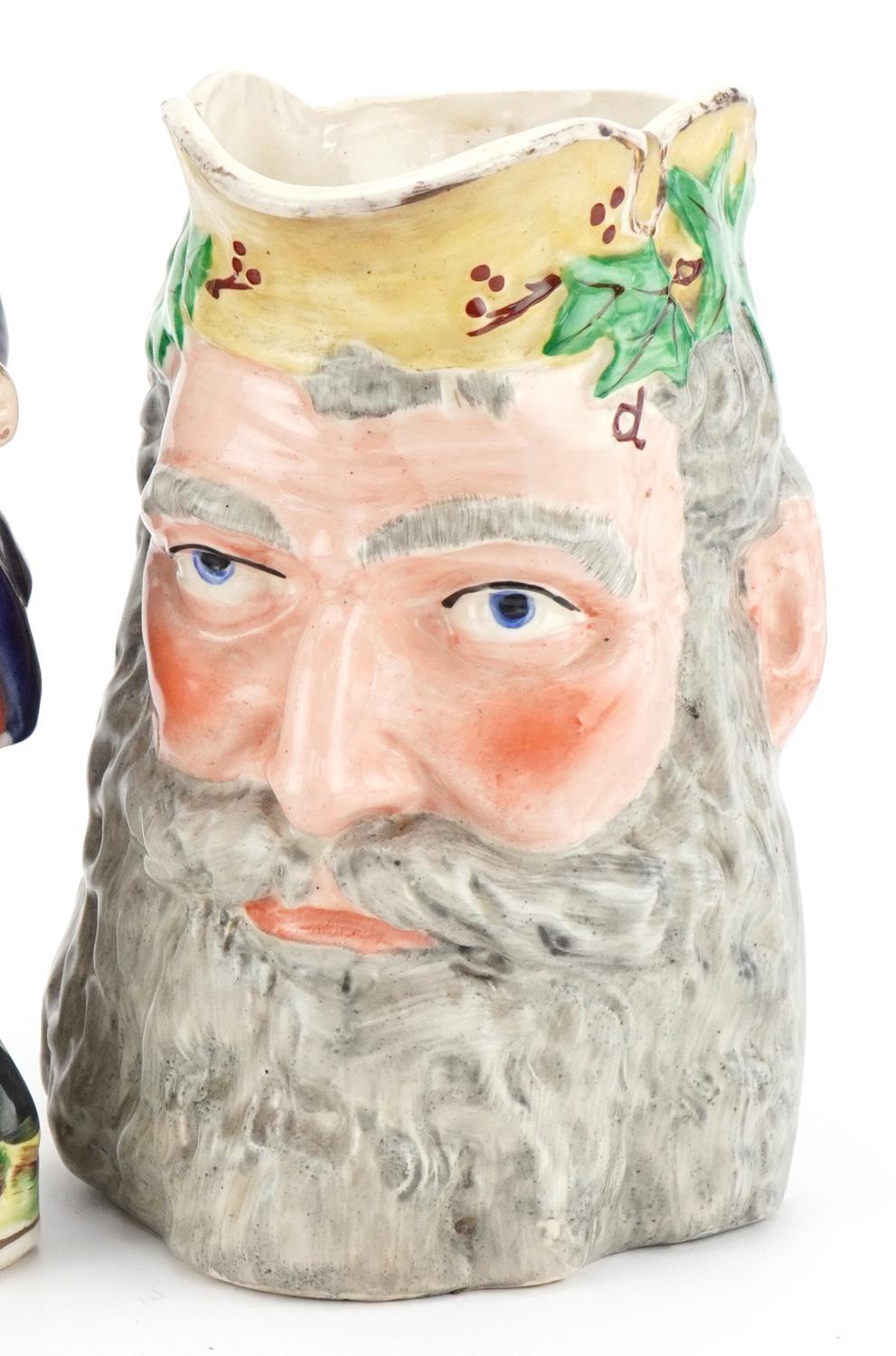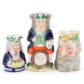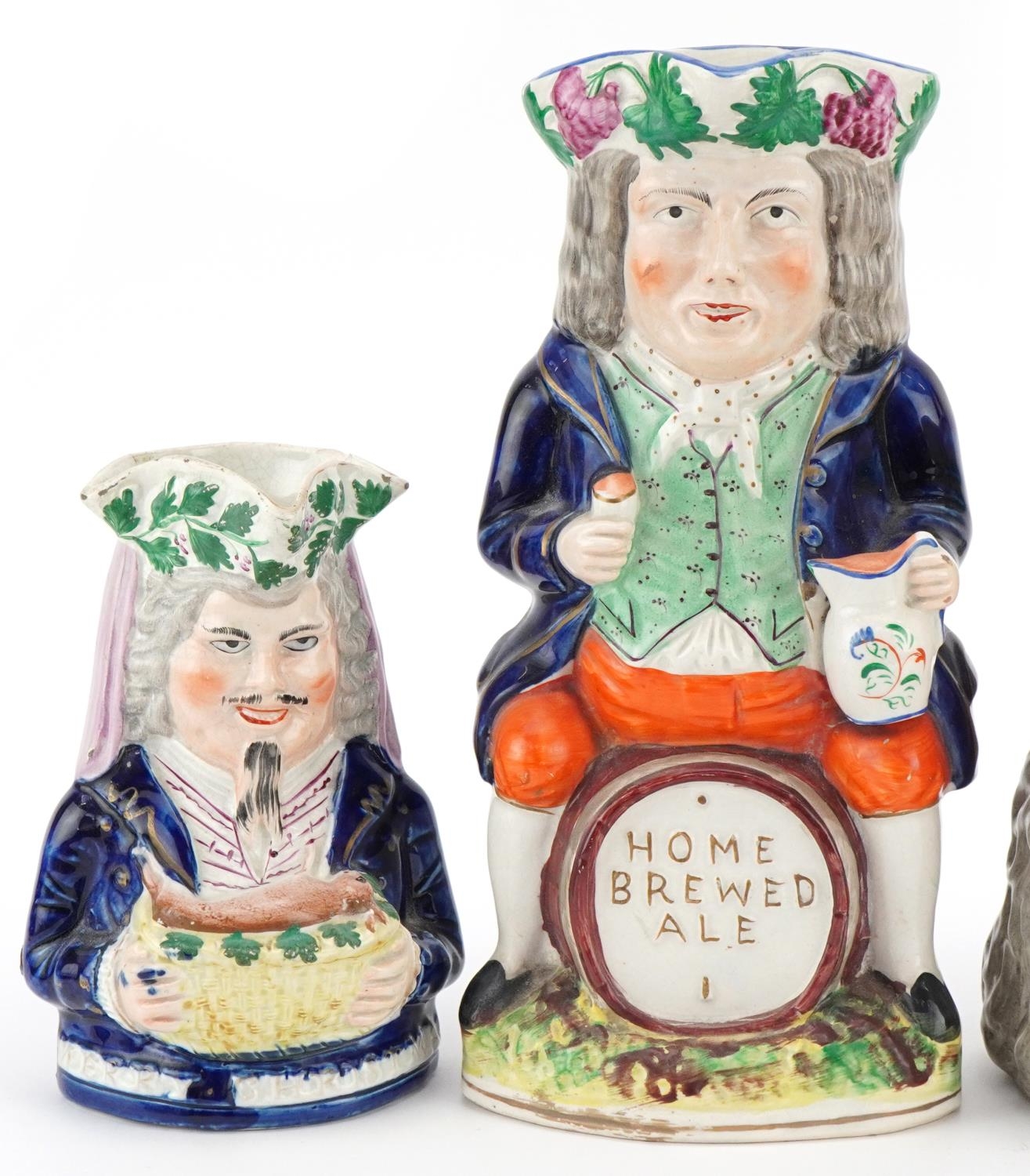 A Victorian Staffordshire pottery Toby Jug 'Merry Christmas' , a Greek Bacchus Toby jug and a Home Brewed Ale Toby jug, the largest 26cm high