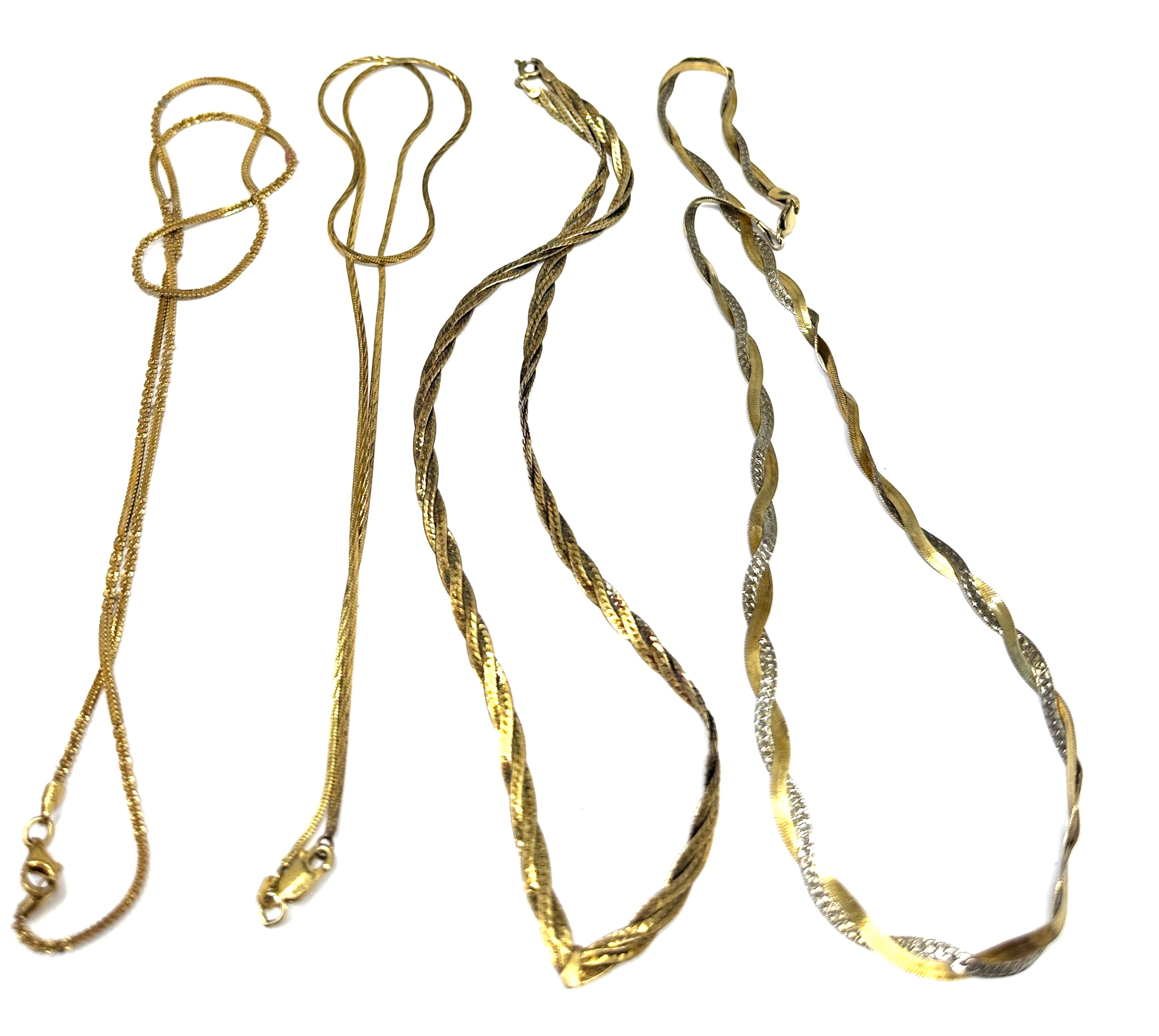 4 vintage silver with gold gilt necklaces & chains weight 26g