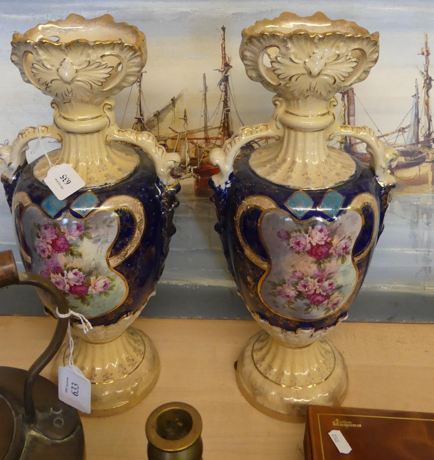 Large Pair of Edwardian Pottery Vases.
