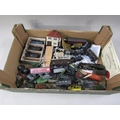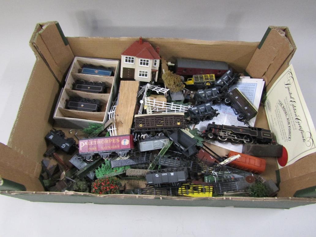 BOX OF TRAINS, TRACK, AND ACCESSORIES