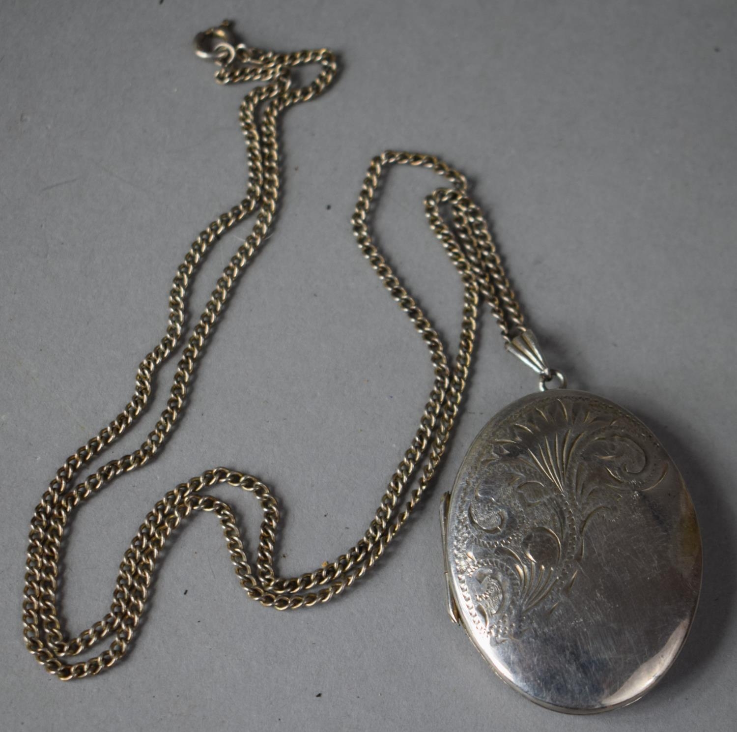 An Engraved Silver Locket, Hallmarked for London 1974 on 925 silver Chain