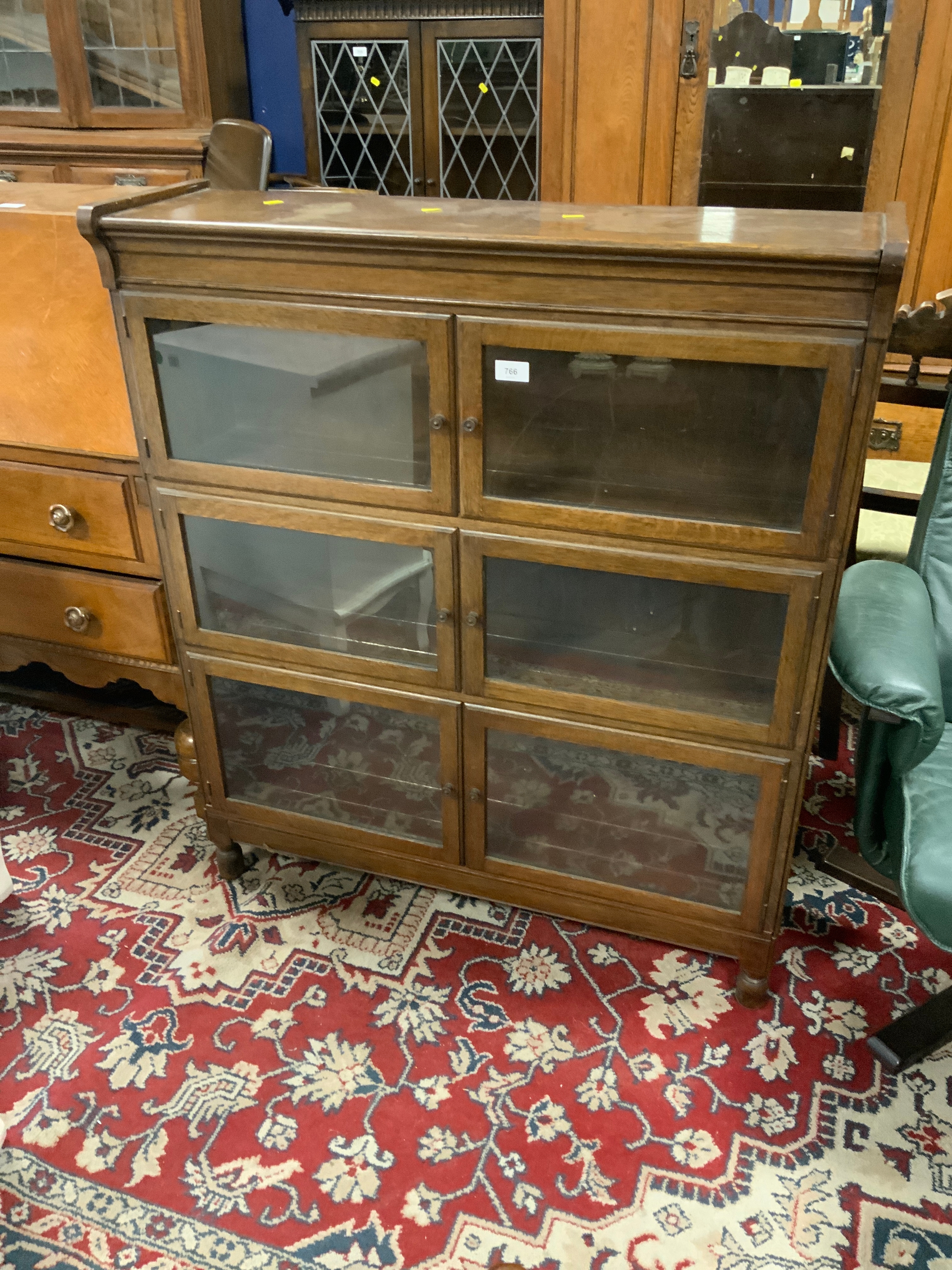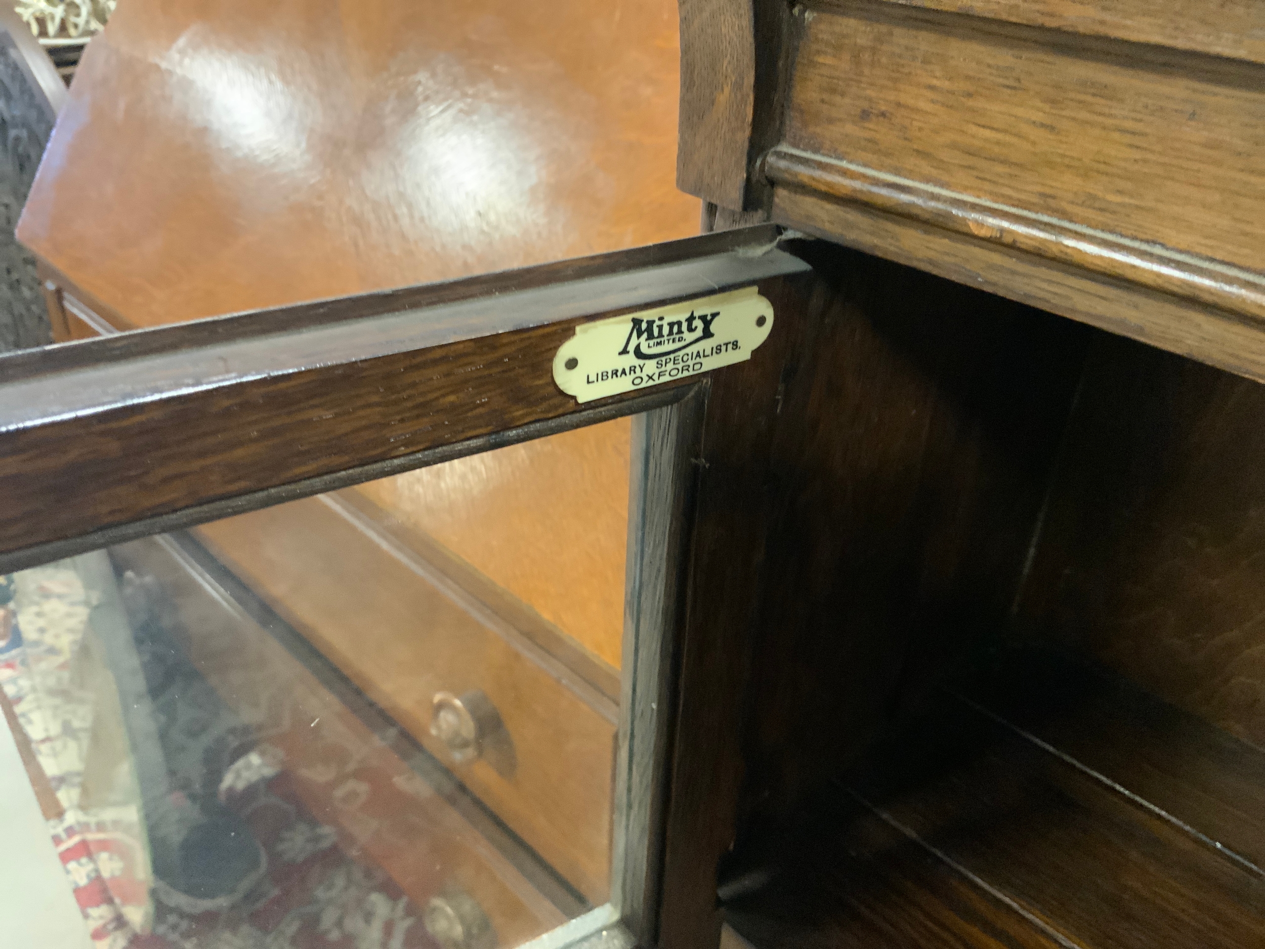A vintage oak glazed ‘Minty’ three stage bookcase H 105 cm W 89 cm