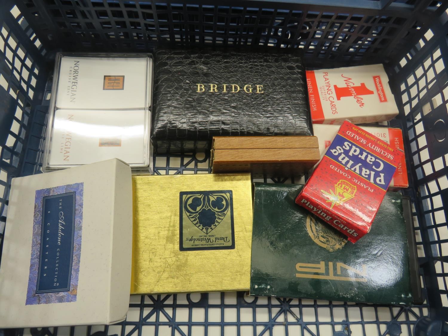 VINTAGE PLAYING CARD SETS, WOODEN TRINKET BOXES, BRIDGE SET etc