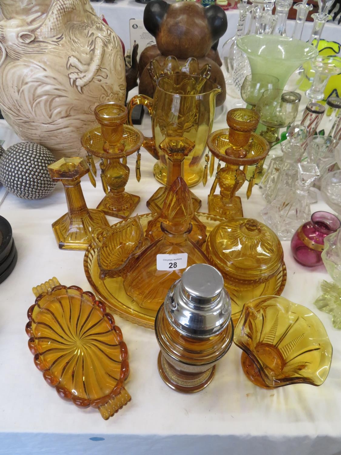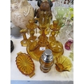 A collection of amber glass items