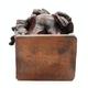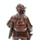Carved wood figure of a poacher clutching a rifle and rabbit, 15cm high