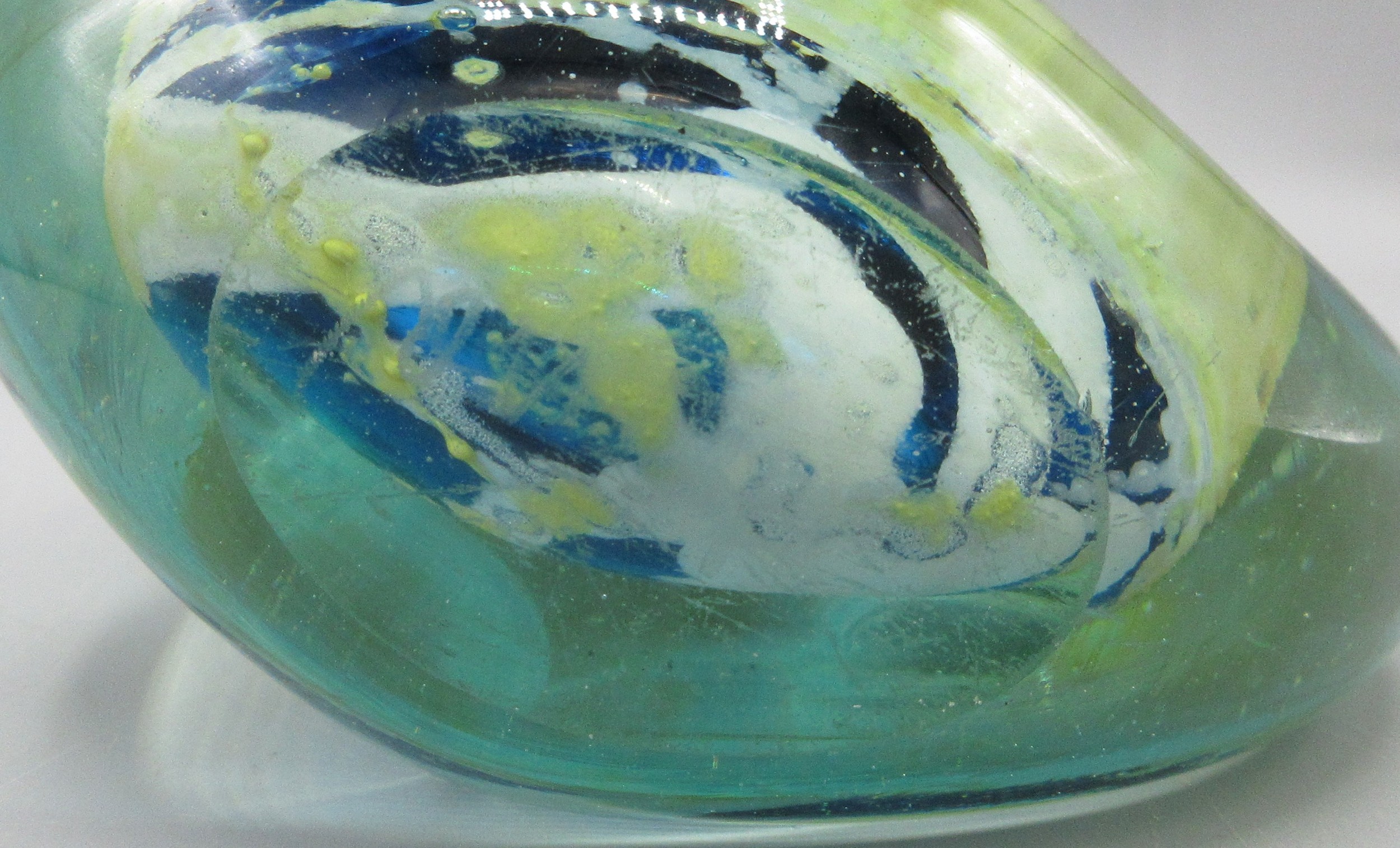 Mdina glassware, fish vase, in the manner of Micheal Harris, green and blue cased vase, incised 'Mdina' to base, H20cm