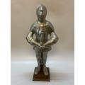 A silver sprayed companion stand in the form of a Medieval knight, on stepped square brass base - 27in. high