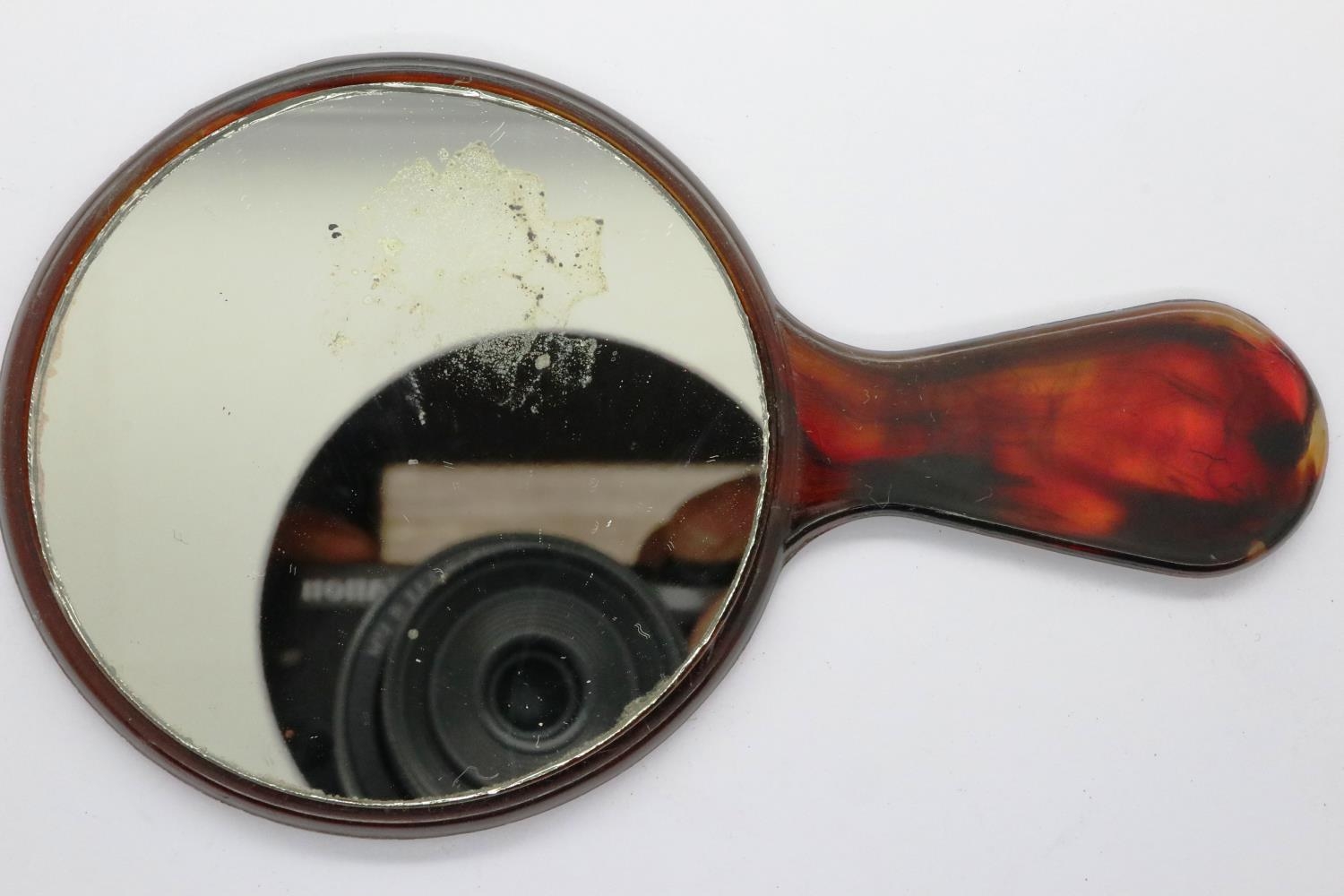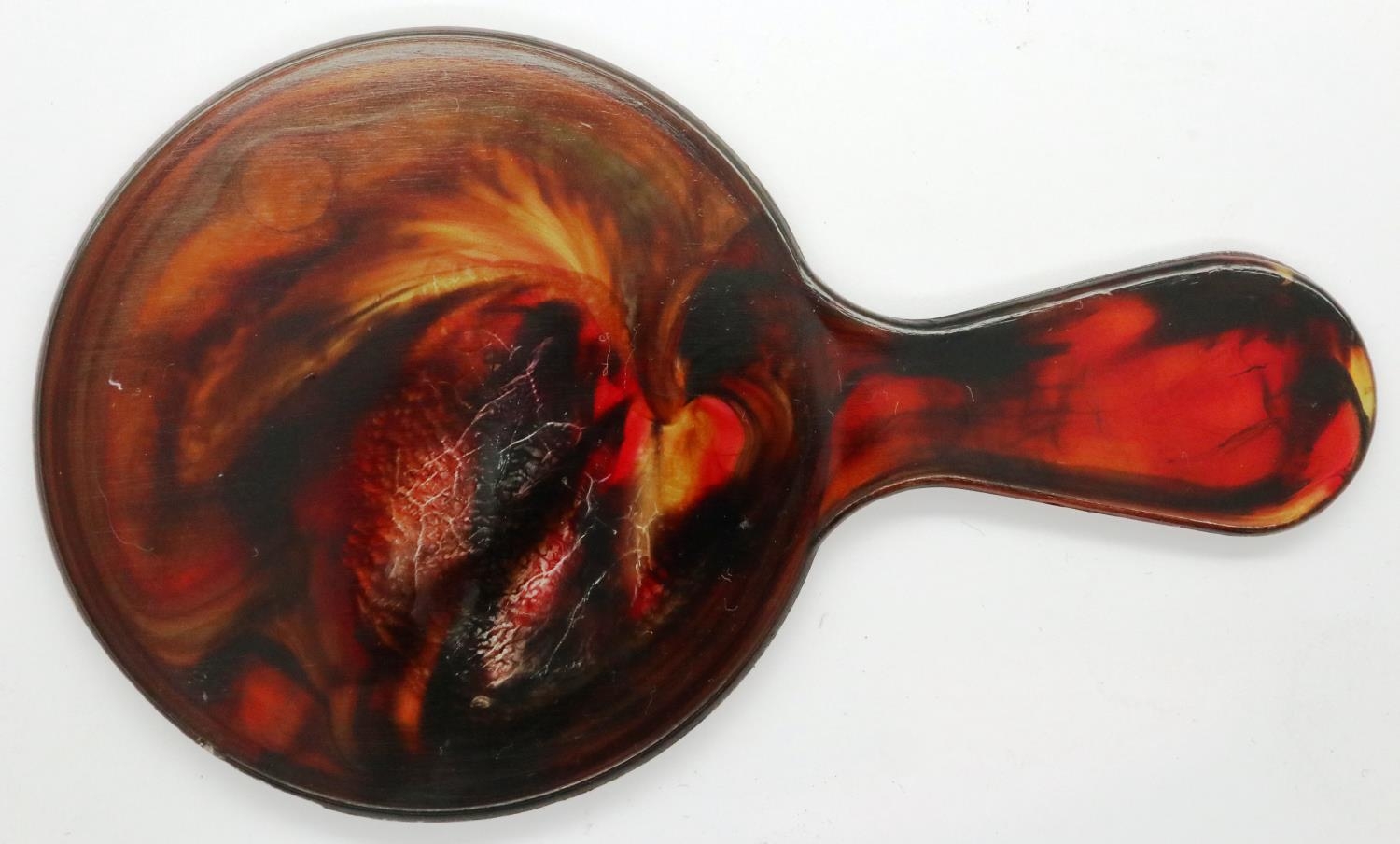 Tortoiseshell painted hand mirror, L: 11 cm. P&P Group 1 (£14+VAT for the first lot and £1+VAT for subsequent lots)