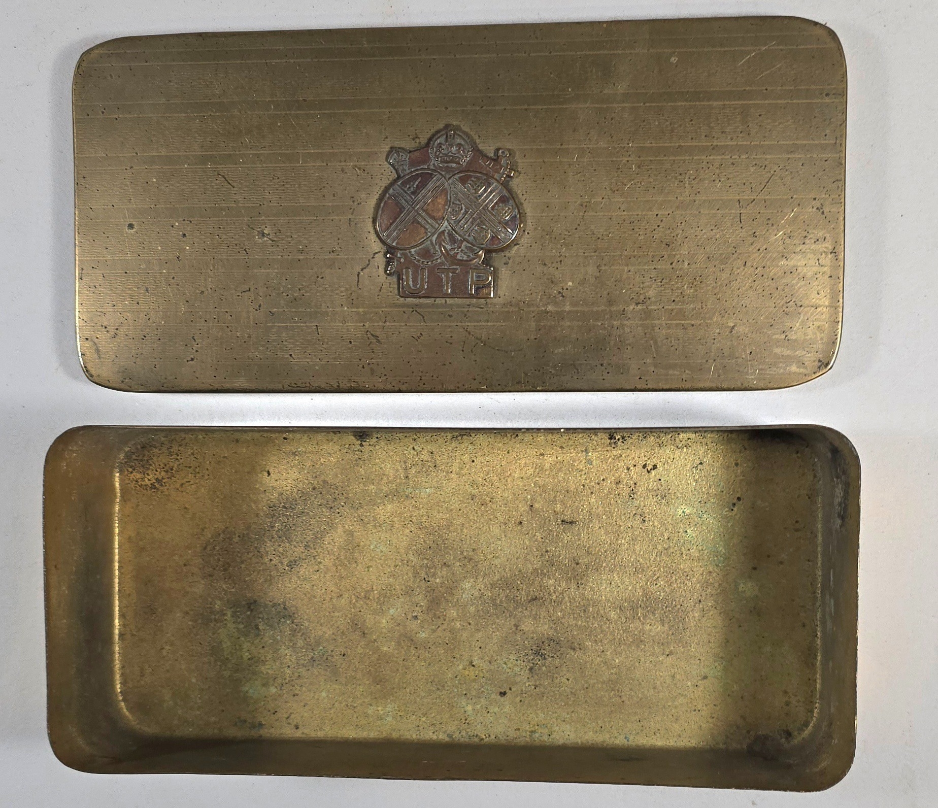 Description A WW2 Upper Thames Patrol Home Guard brass cigarette box 7"x