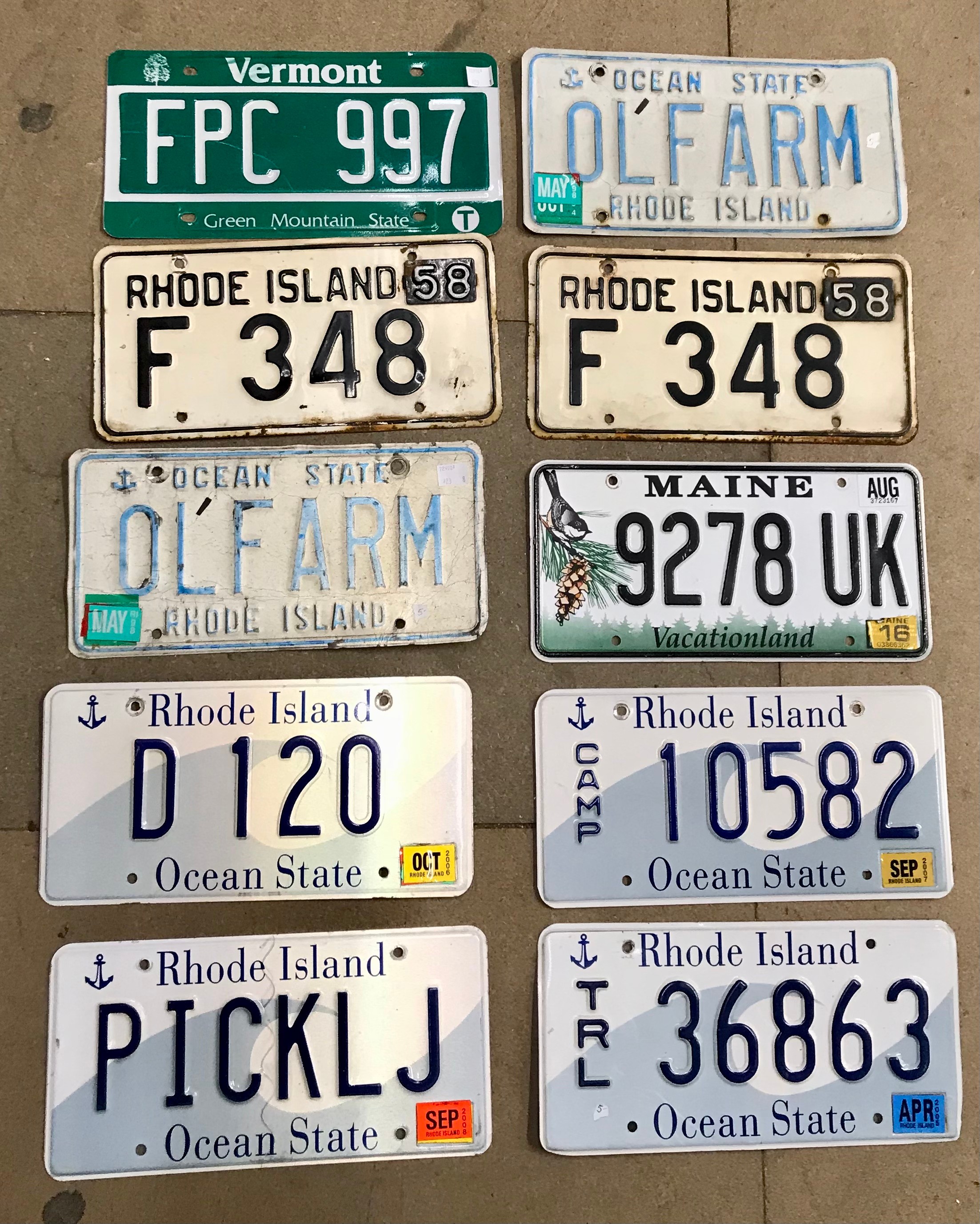 Ten vintage American vehicle licence plates