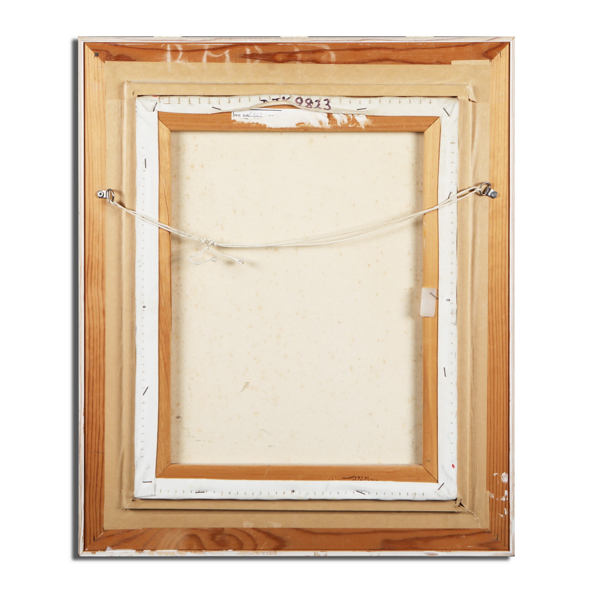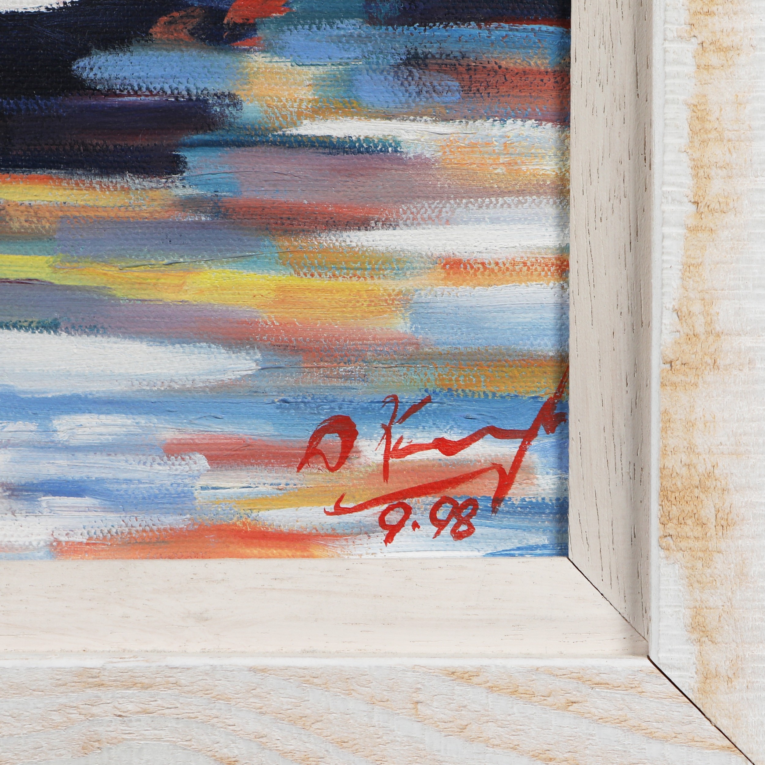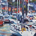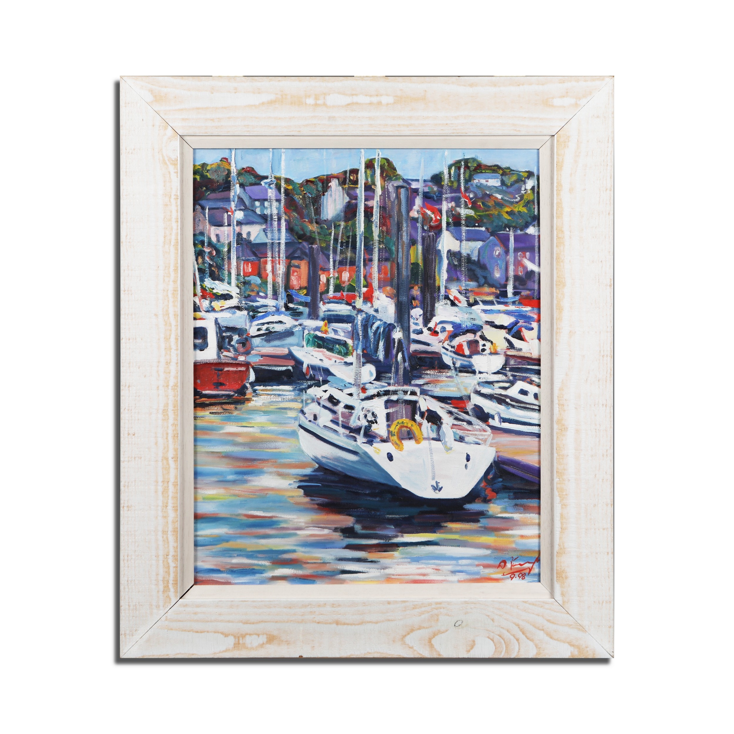 HARBOUR SCENE WITH BOATS. oil on canvas, signed and dated bottom right, framed, 67 cm H x 56 cm W (framed).