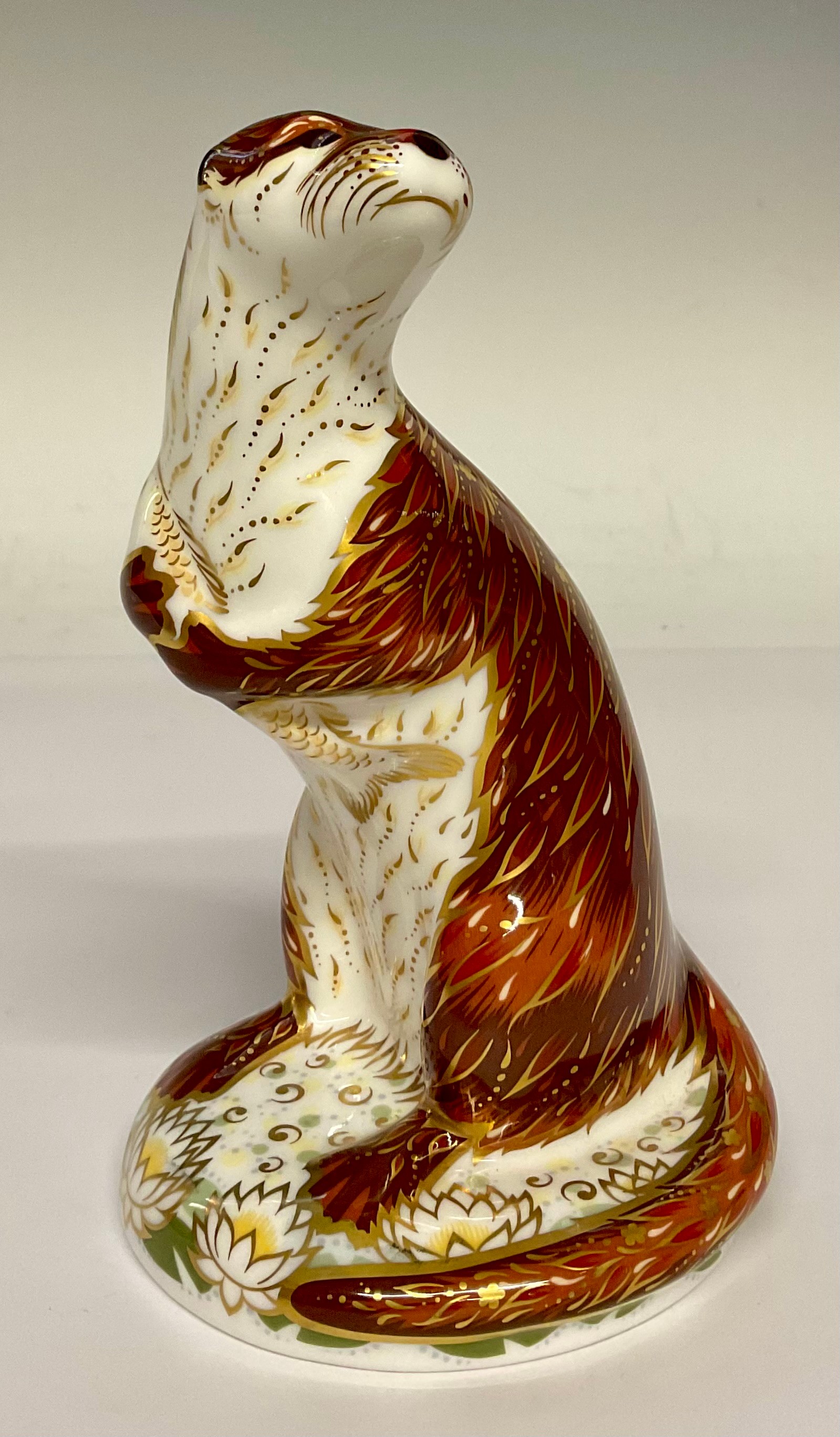 A Royal Crown Derby paperweight, Playful Otter, limited edition 66/250, gold stopper, 16cm, printed mark in red, limited number written in gold