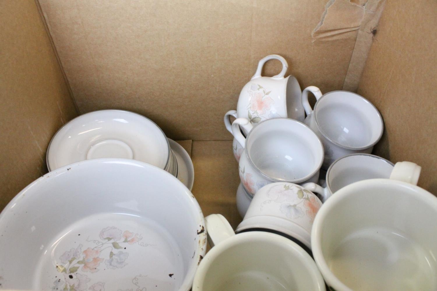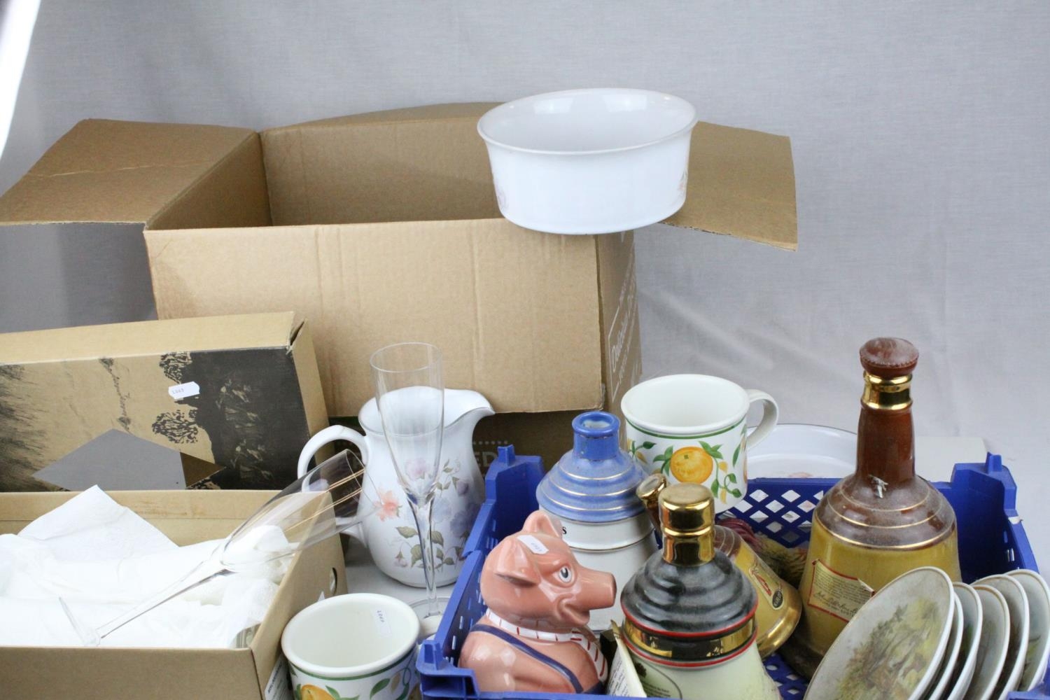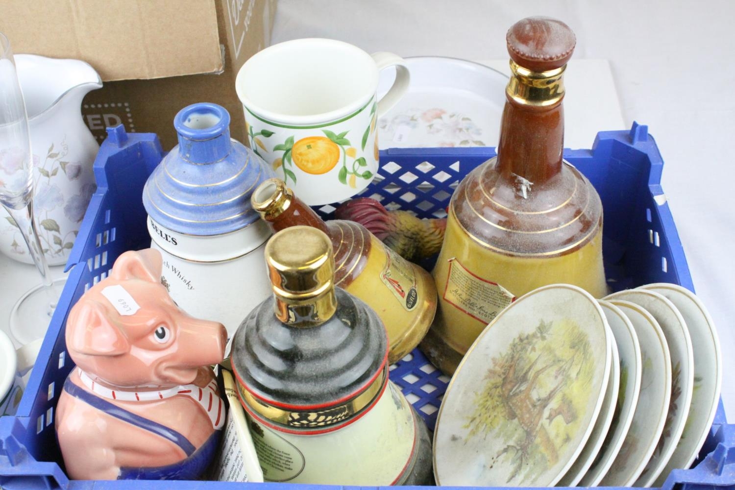 Mixed Lot of Ceramics including Portmeirion ' Mandarin ' Tea Ware, Denby China, Three Wade Bells Decanter, Nat West Pig plus AA Badge and Champagne Flutes