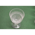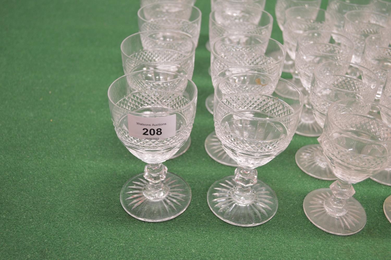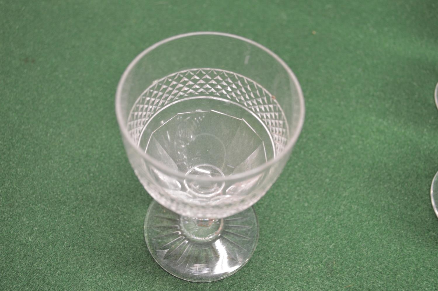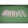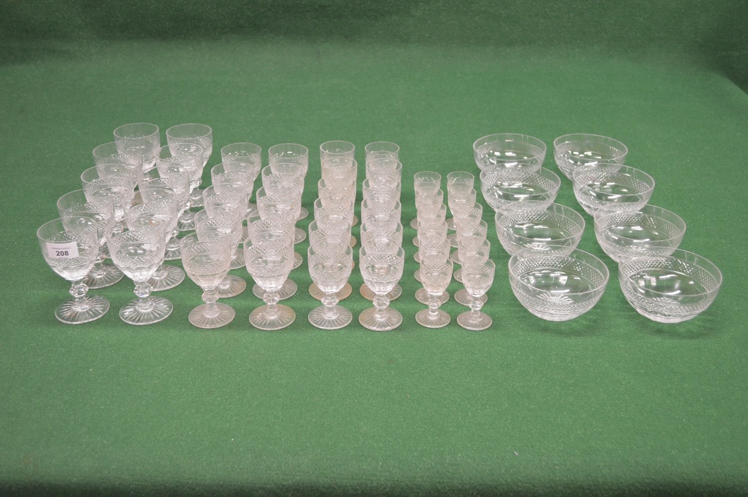 Part suite of unnamed cut glass stemmed drinking glasses to comprise of: ten 4.75" glasses, ten 4.25" glasses, twelve 4" glasses, twelve 3.25" glasses and eight 5" bowls