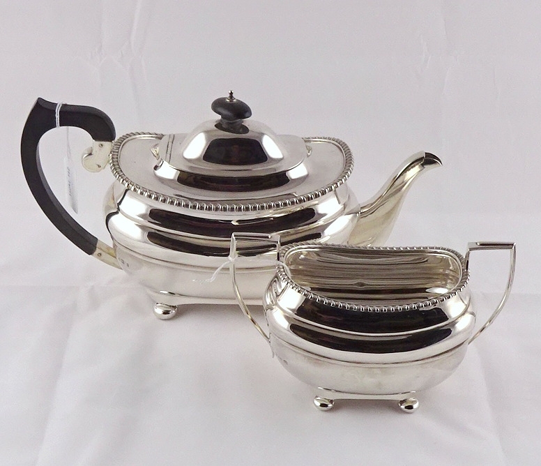 A silver part tea set comprising teapot and sugar jug, Birmingham 1940. Teapot 300mm spout to handle / 1190gr gross. (by instruction of the family of Dame Fanny Waterman)