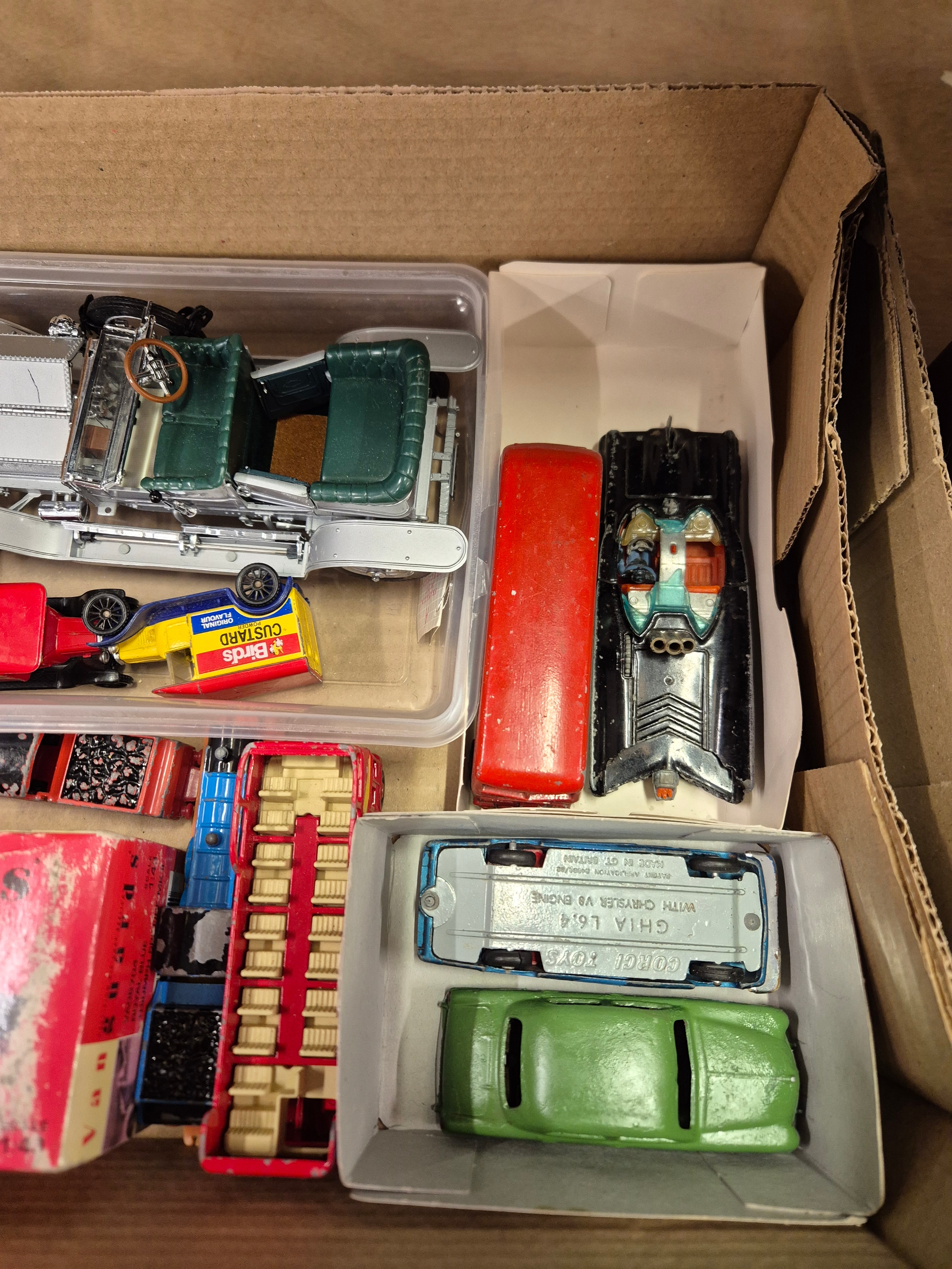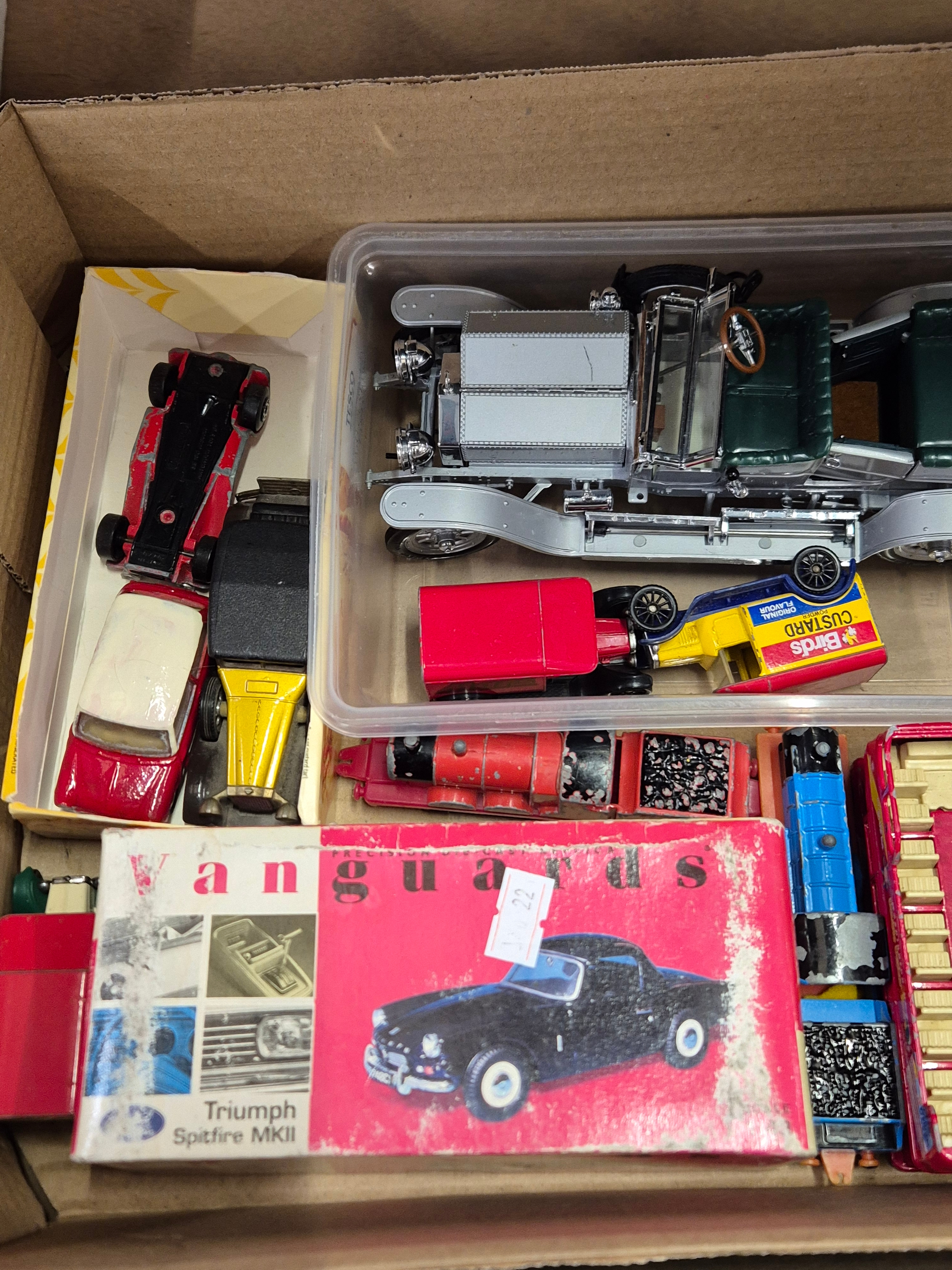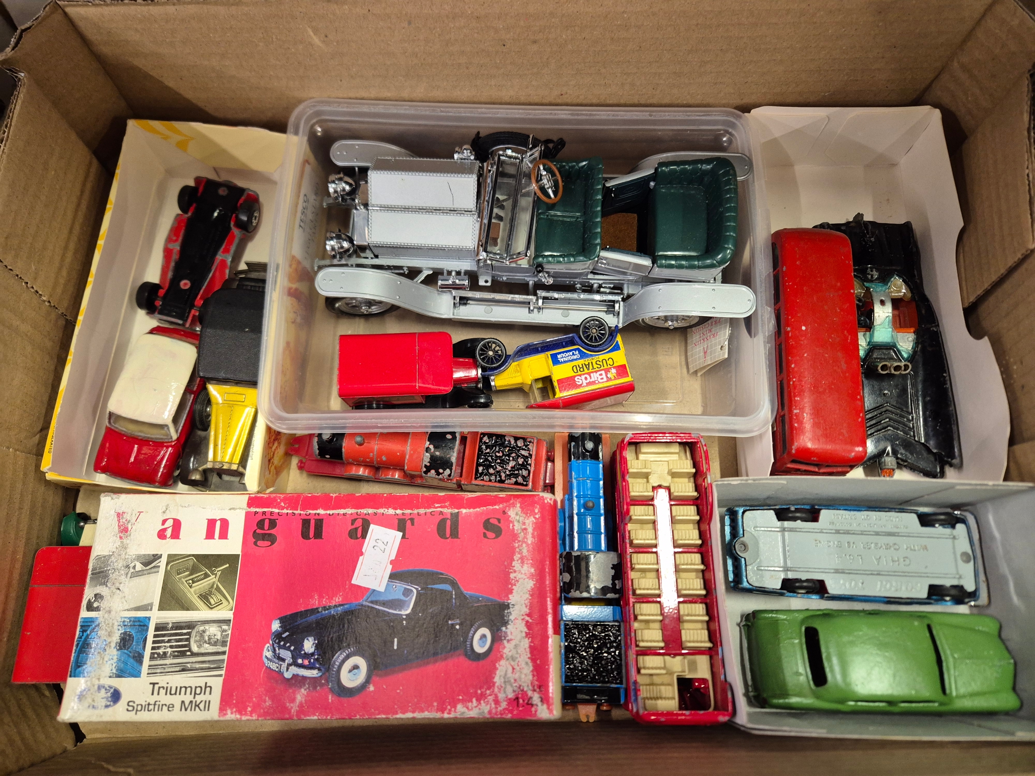 Box of collectors cars and other vehicles to include Corgi, Vanguards, Dinky, Budgie, Franklin Mint etc