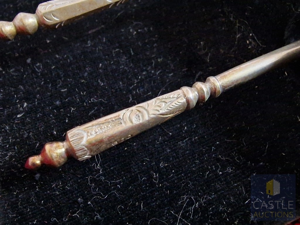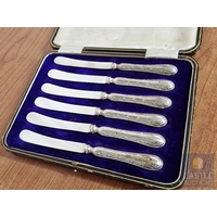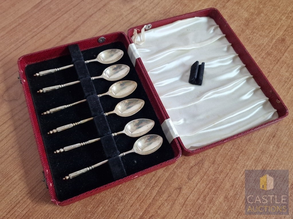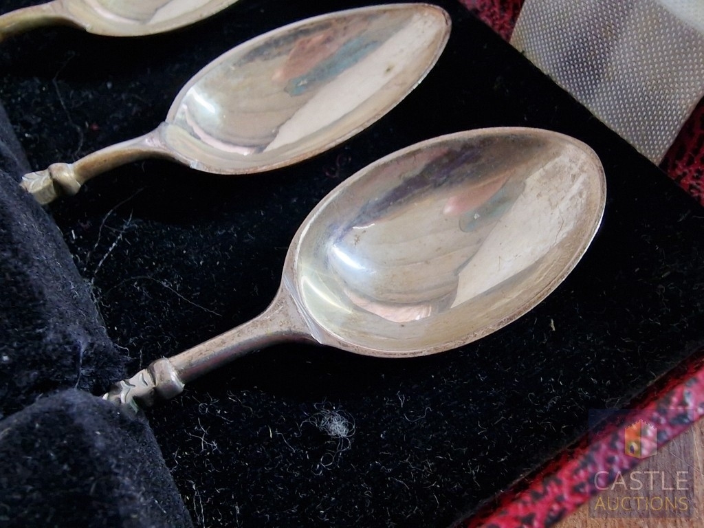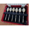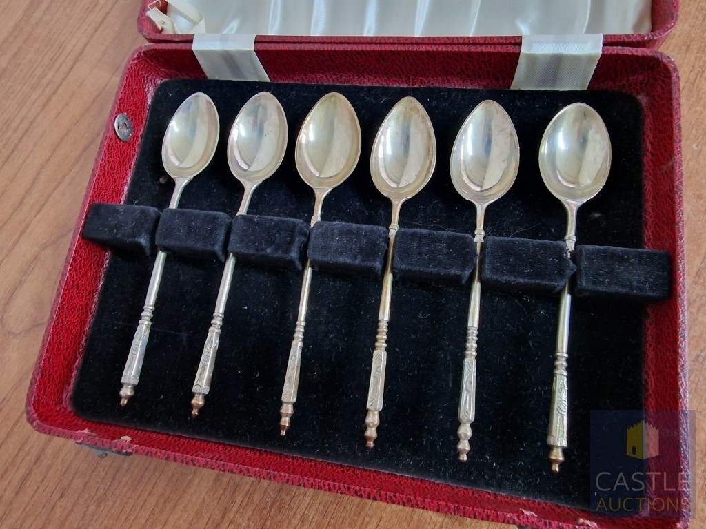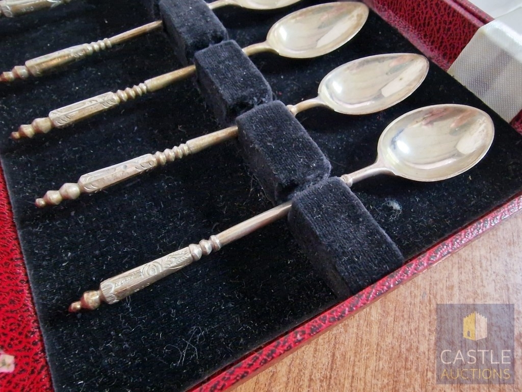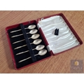Set of 6 x Vintage Silver Tea / Desert Spoons with Decorative Handles, (Approx. L: 14cm, Total Weight 129g, Stamped .800 Silver), in Vintage Case