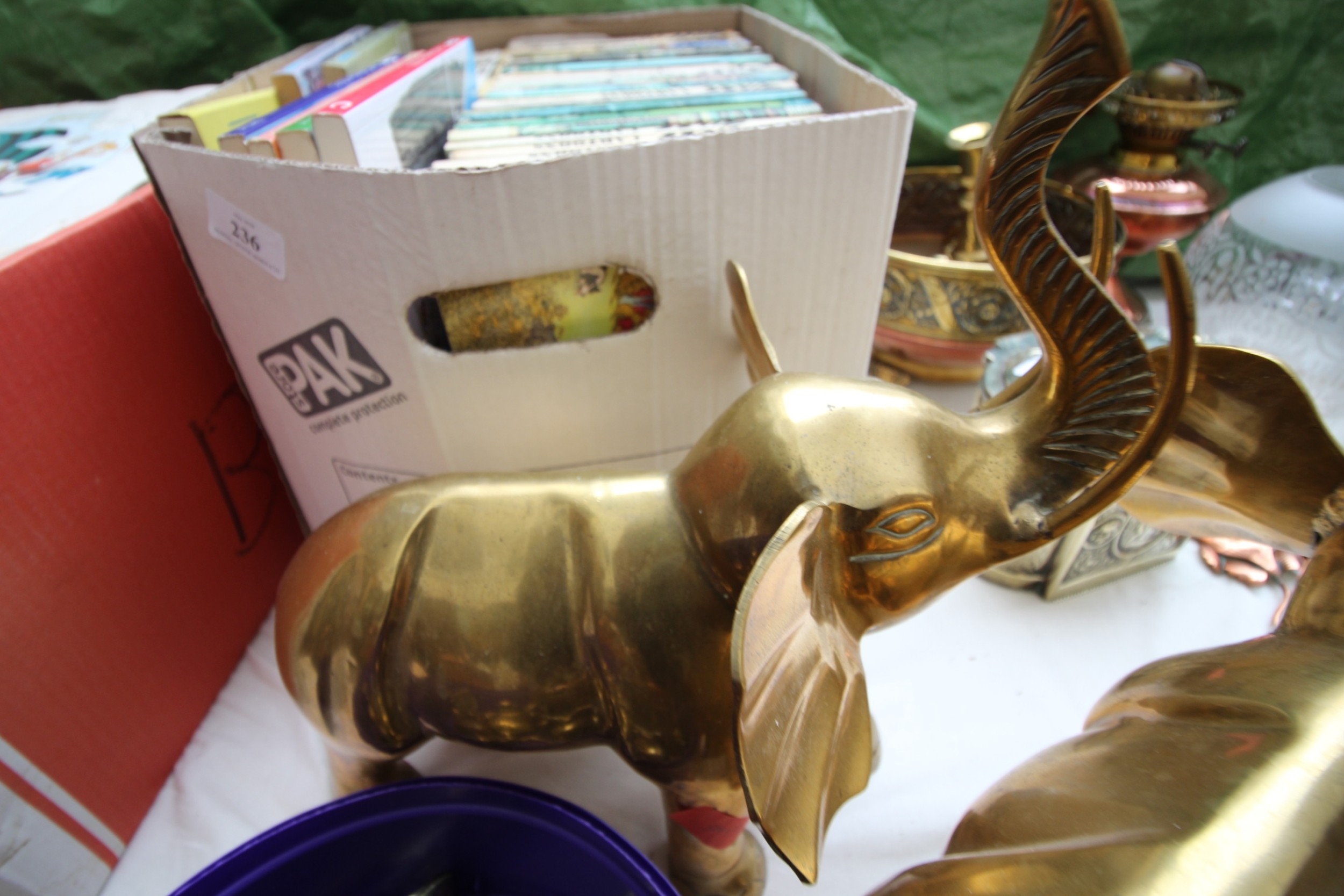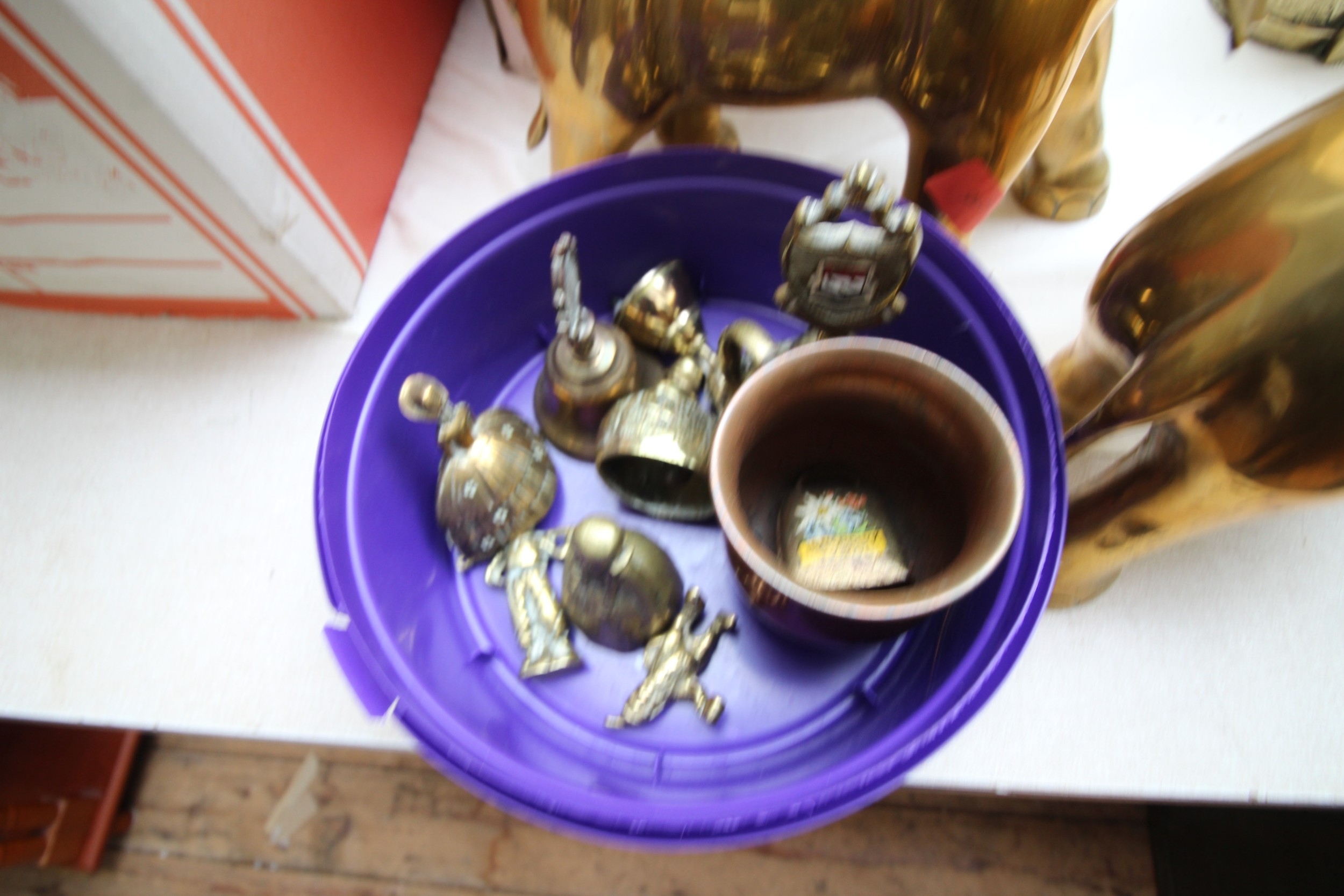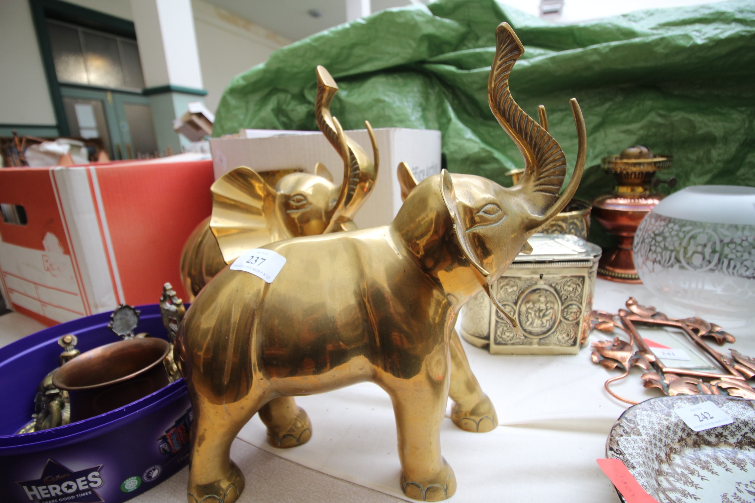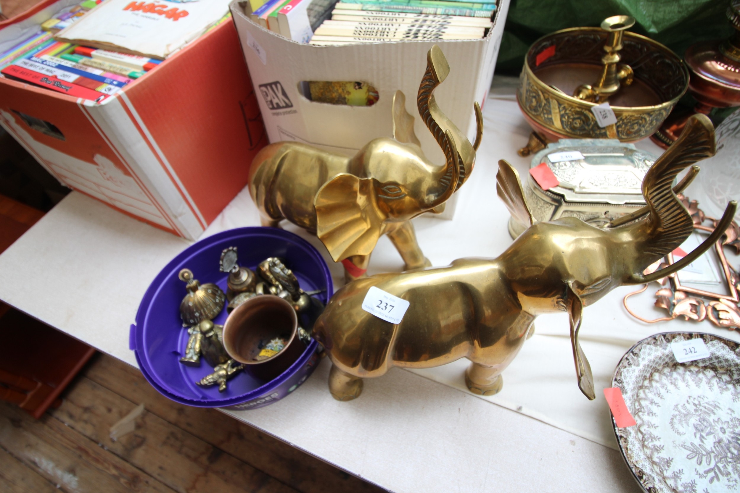 Collection of brass ware, brass bells and 2 large brass ornamental elephants