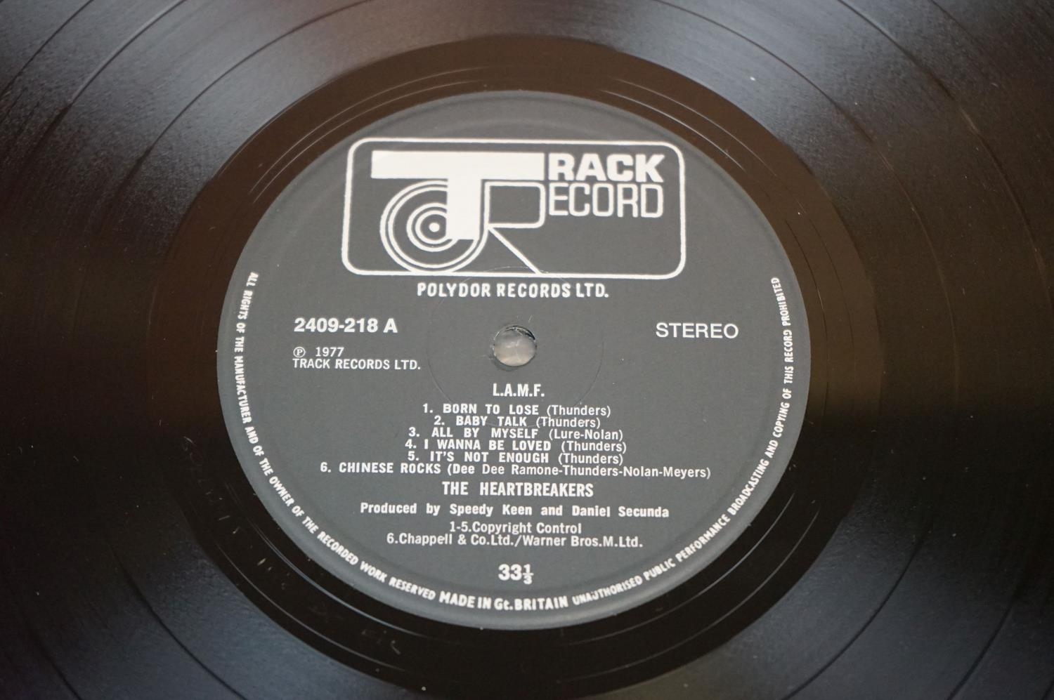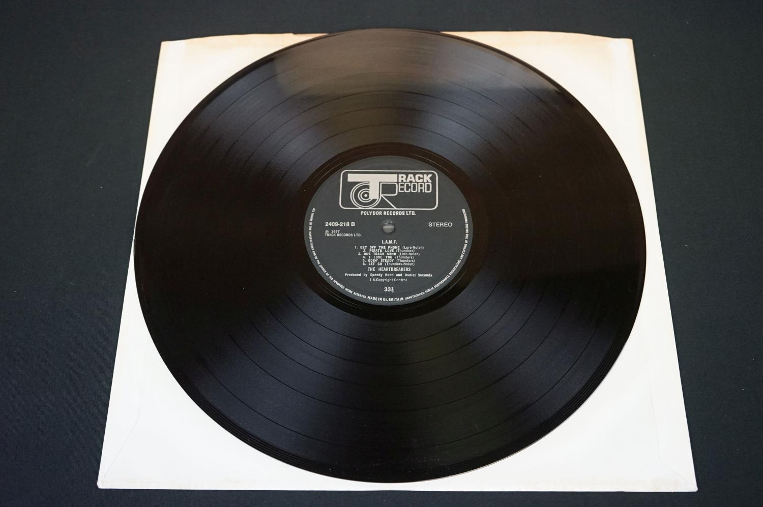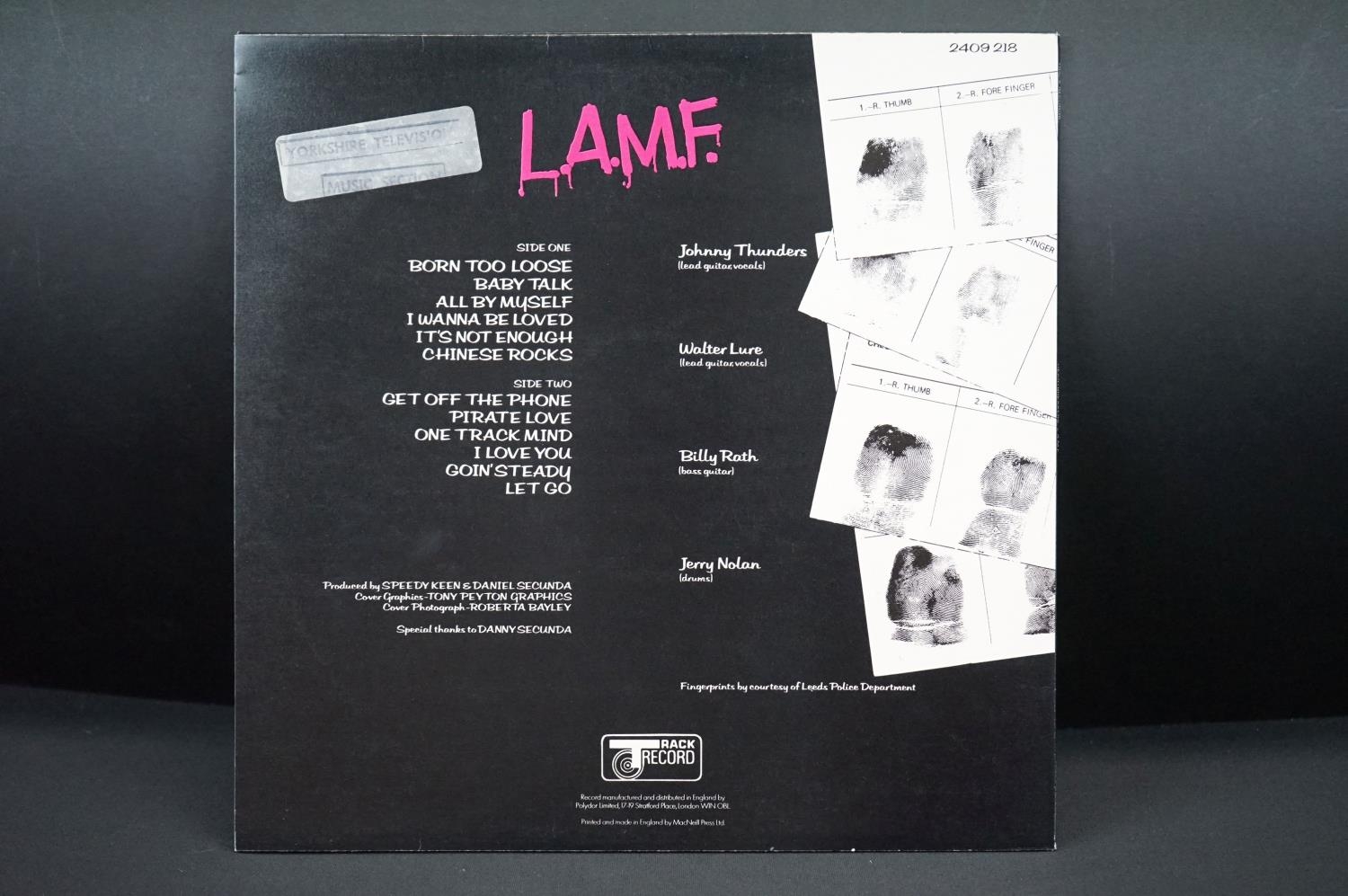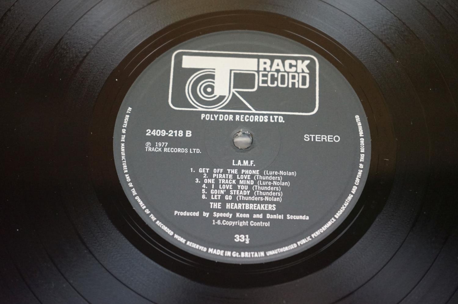 Vinyl - Heartbreakers L.A.M.F. on Track 2409-218. Sleeve Ex with Yorkshire Television sticker to rear and small white sticker with YTV to front, Vinyl at least Ex possibly played once, with small manufacturing nick to rim