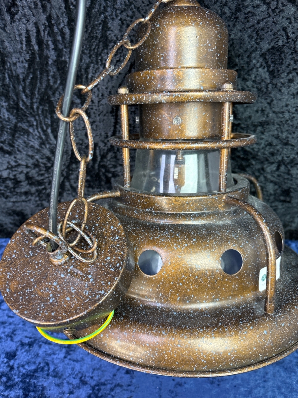 Fabulous nautical style pendant lamp, glass and metal H34cm approx
