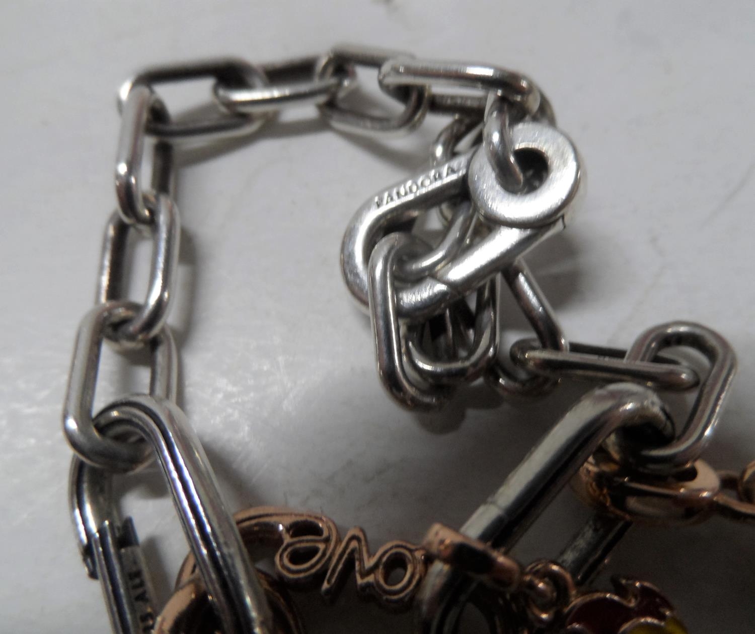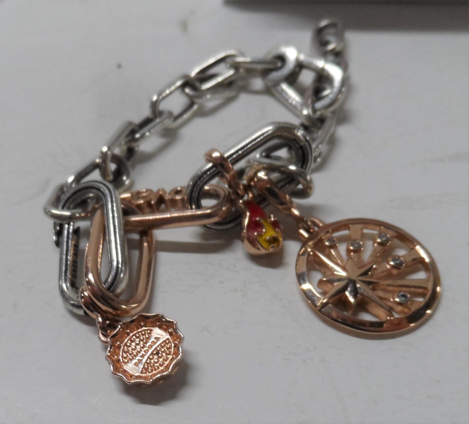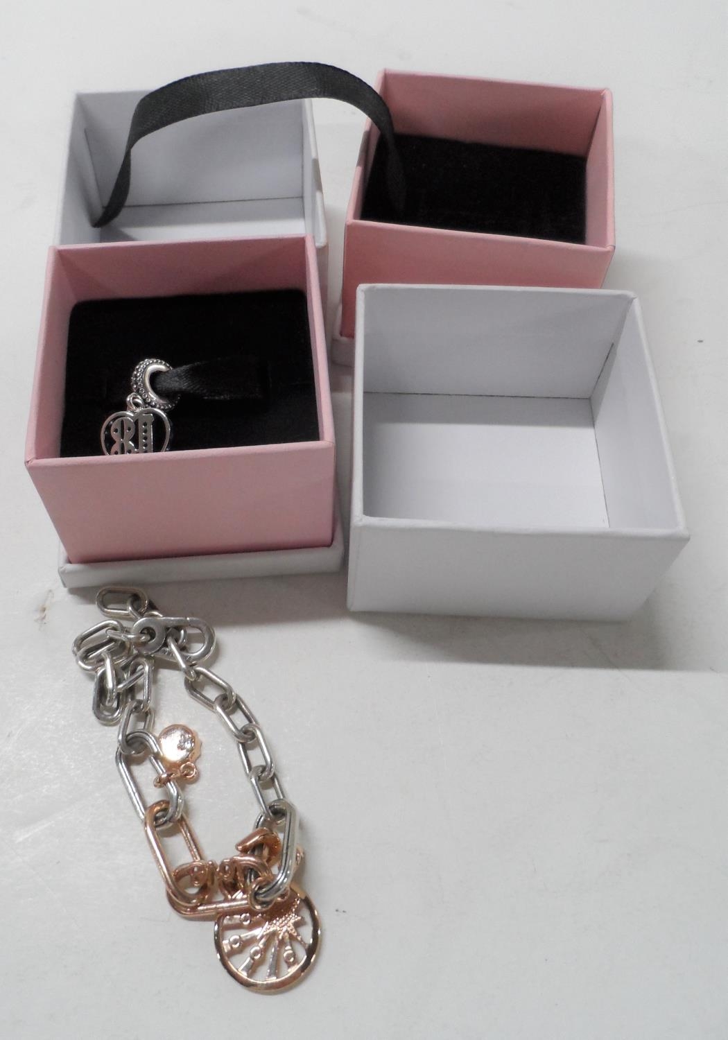 Pandora bracelet together with Pandora charm, both with Pandora boxes (2)