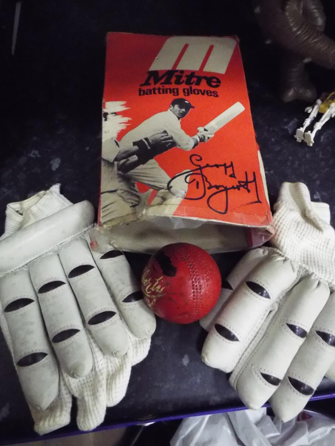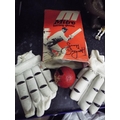 Boxed Mitre pair of Geofrey BoycottCricket Batting gloves and ball