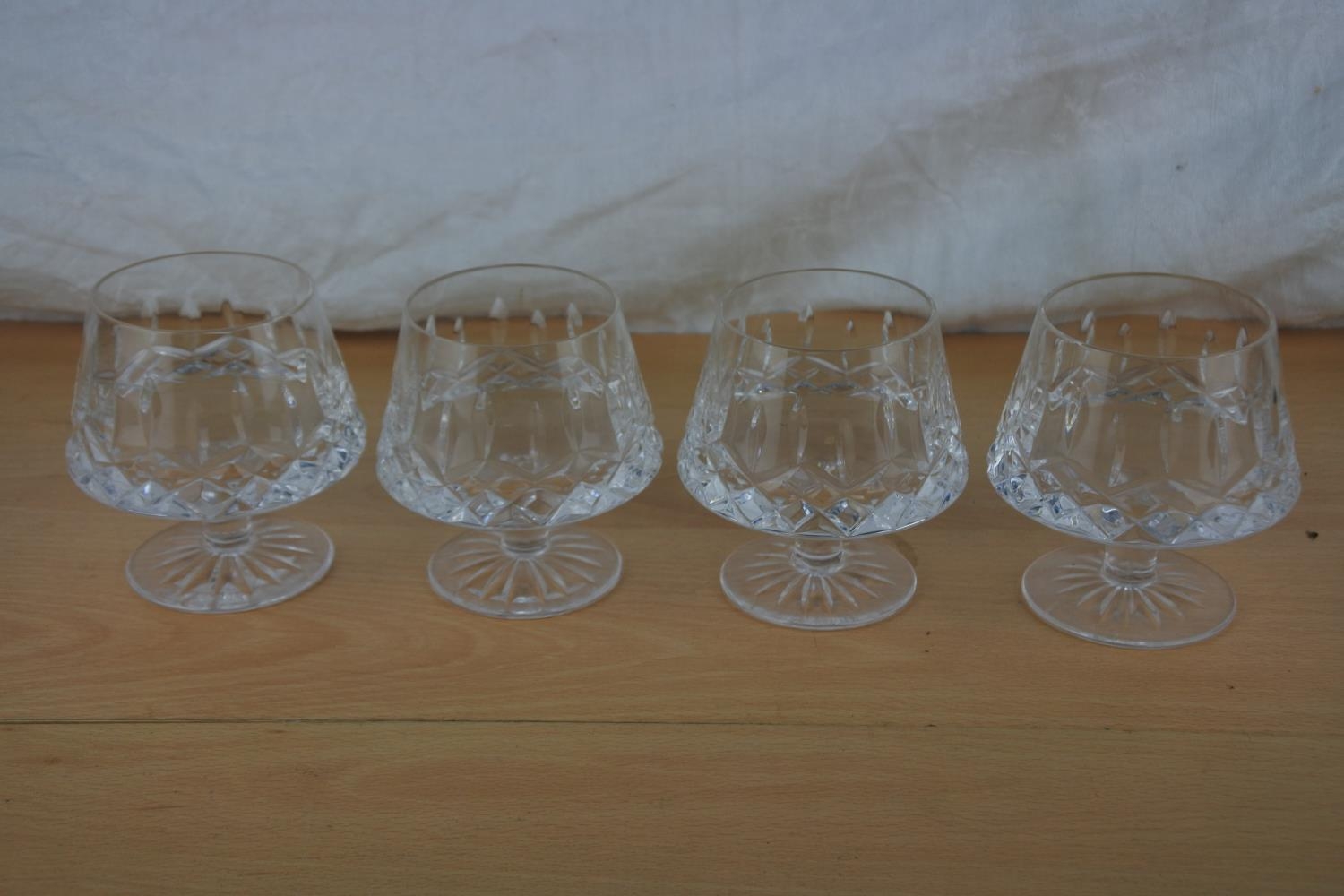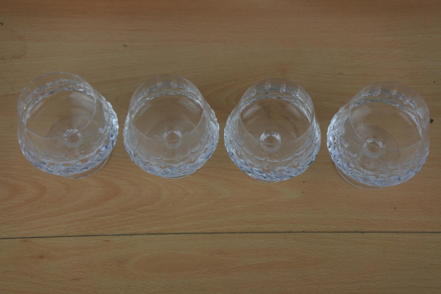 Four Tyrone Crystal brandy glasses.