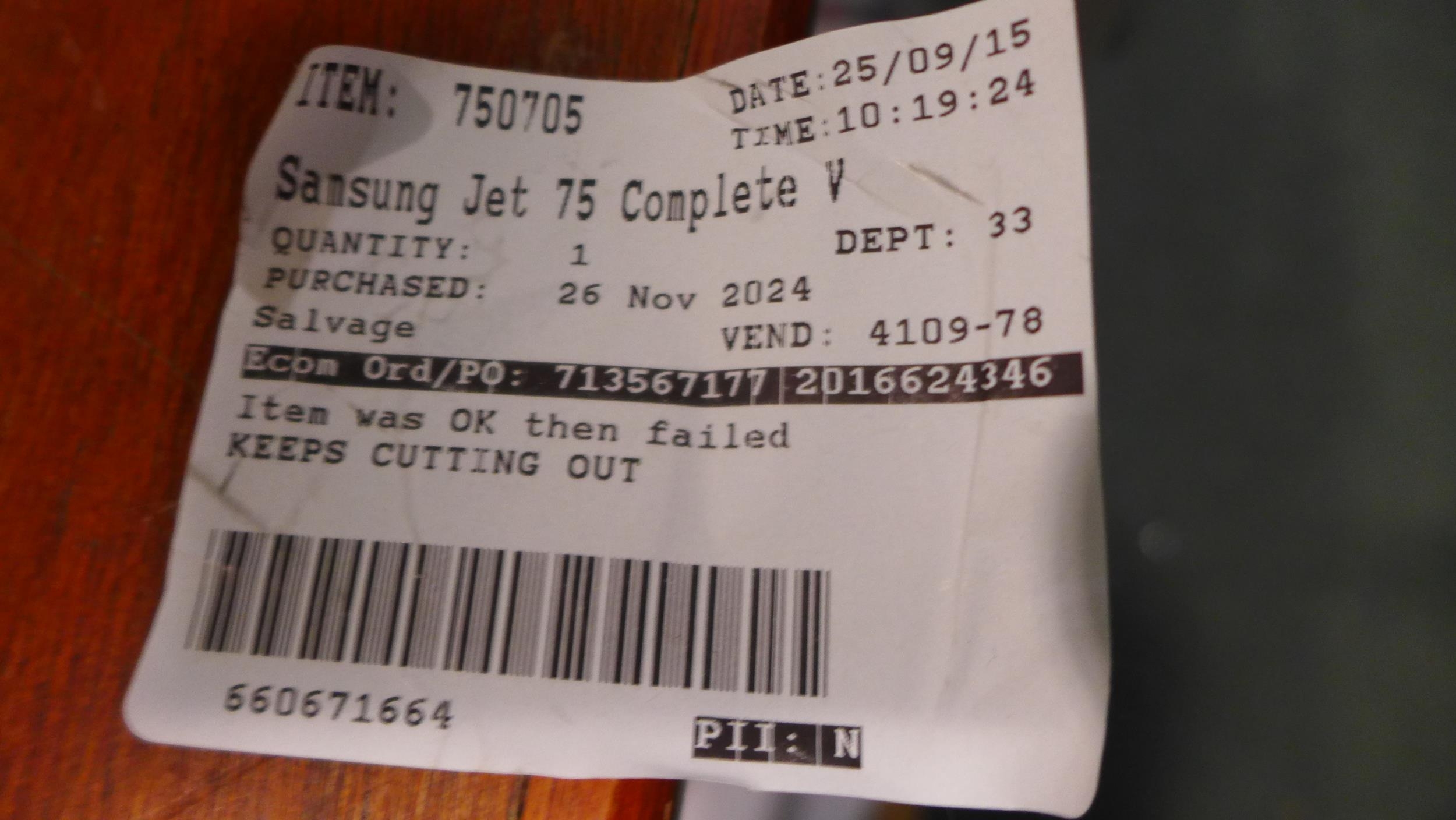 Samsung Jet 75 stick vacuum cleaner with charger, original RRP £249.99 + VAT (372-263) *This lot is subject to VAT