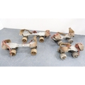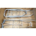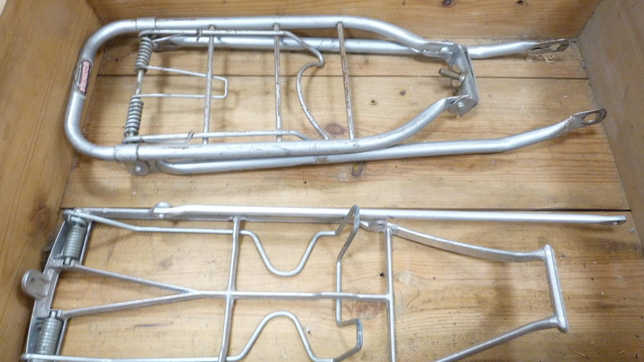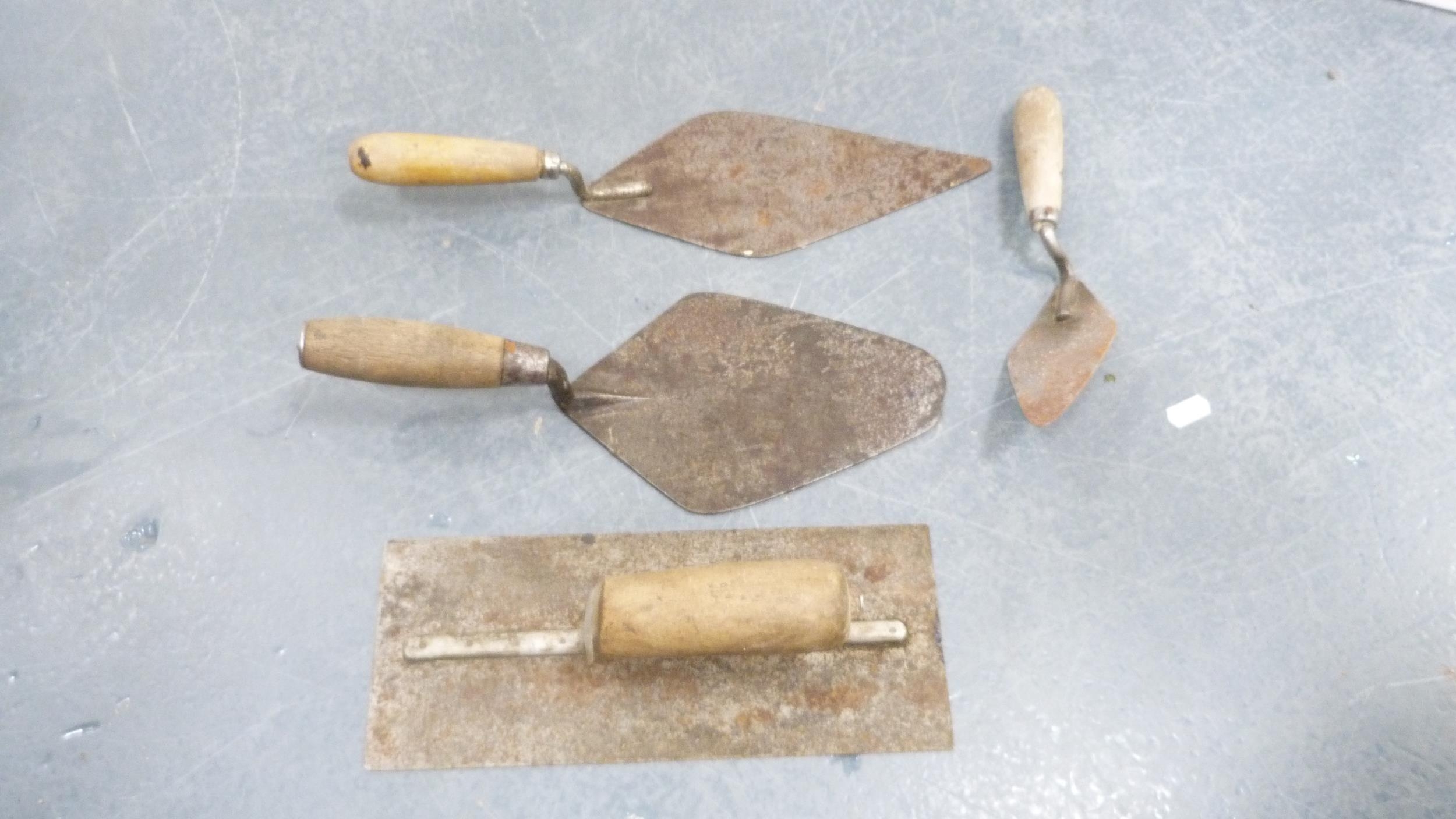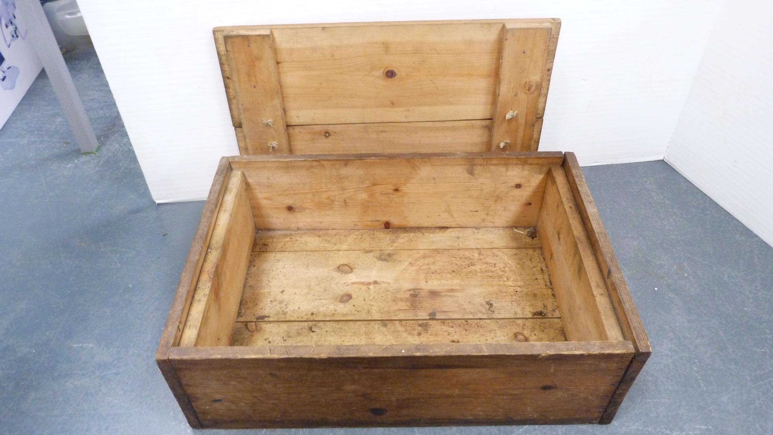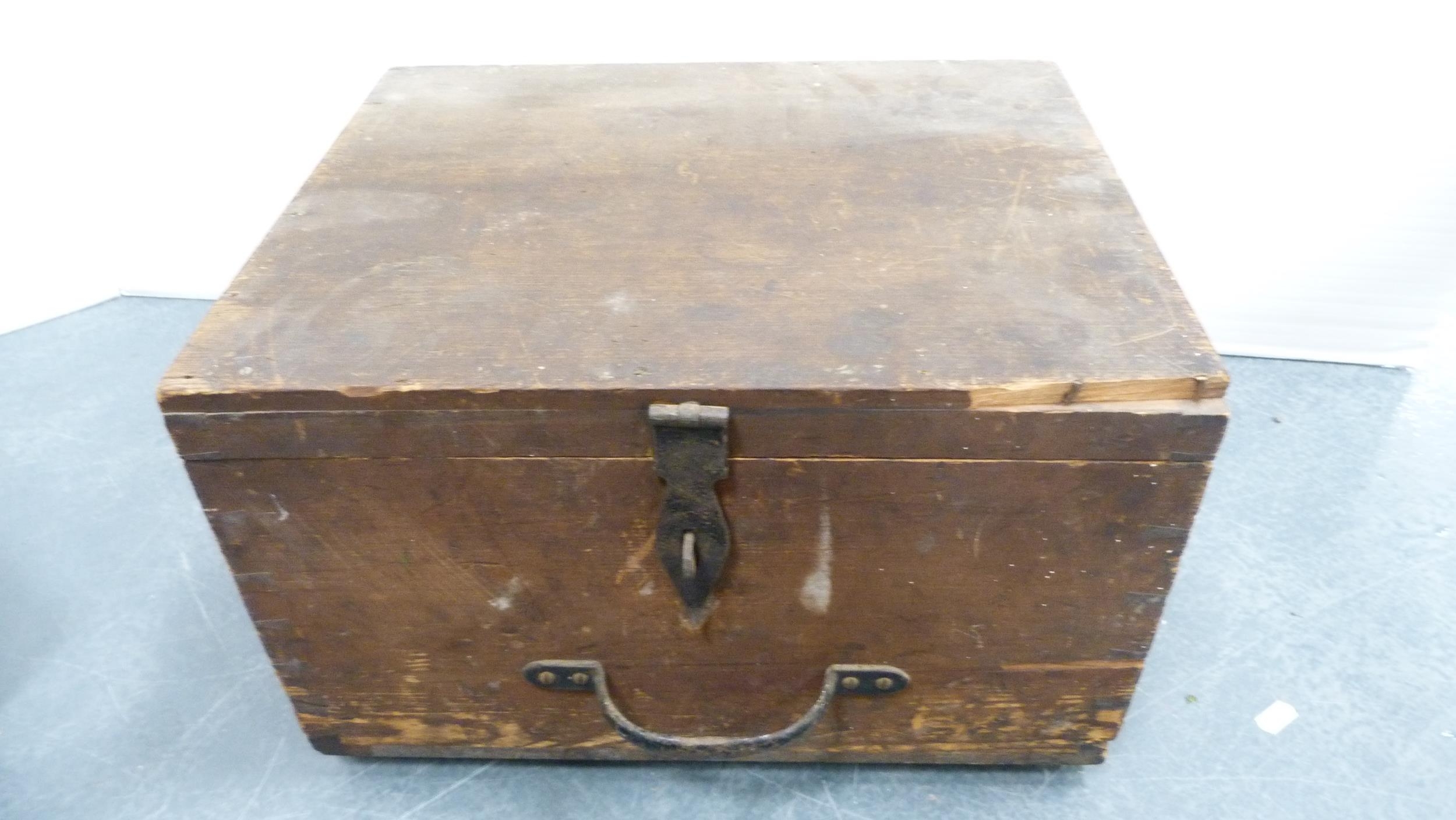 Two wooden crates containing Gipron roller skates, also tools, chisels etc., and another empty crate.