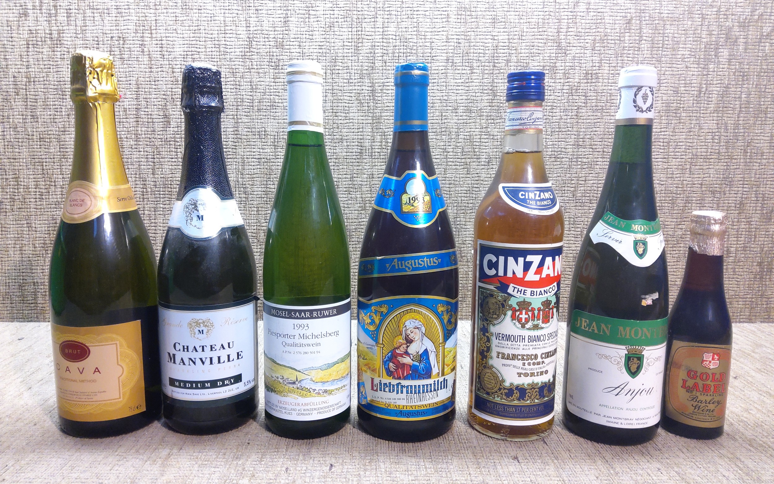 Bottles of booze including Cinzano Vermouth, Cava and Wine.
