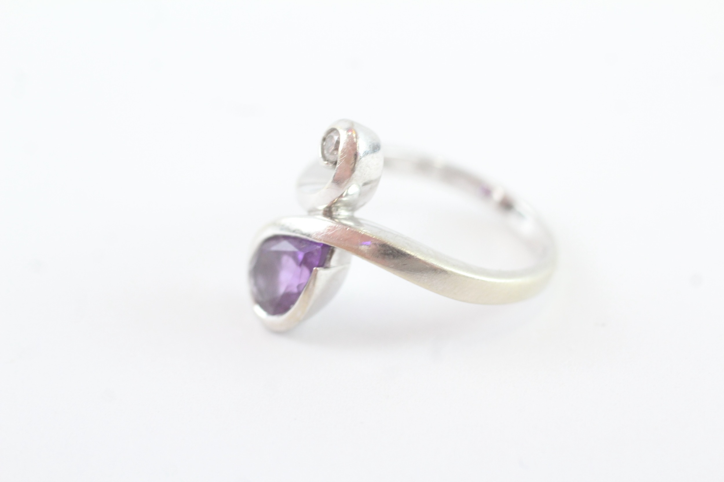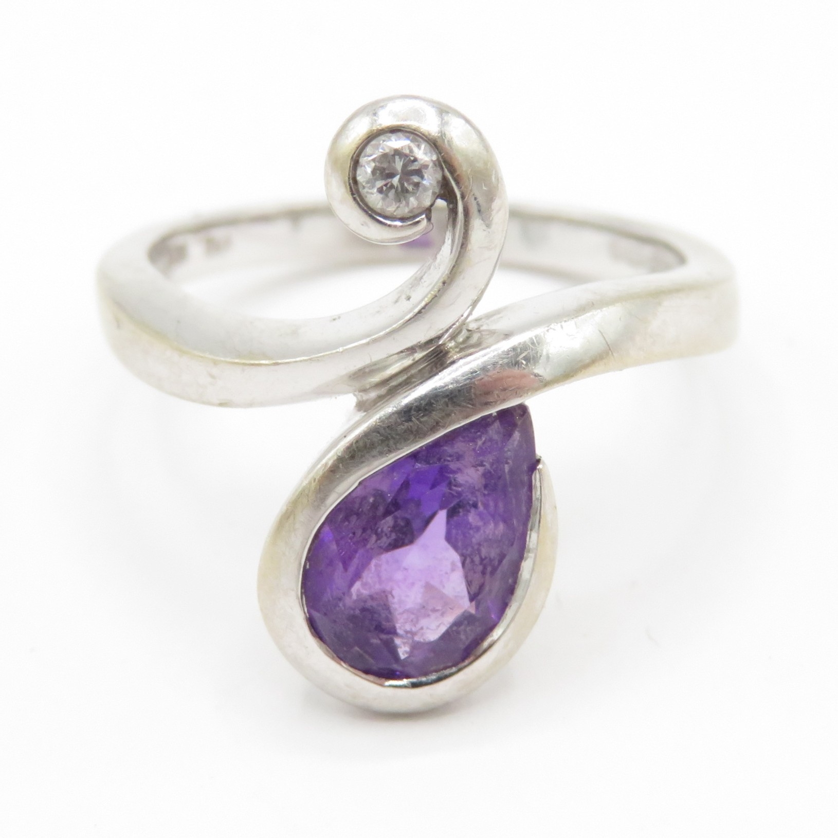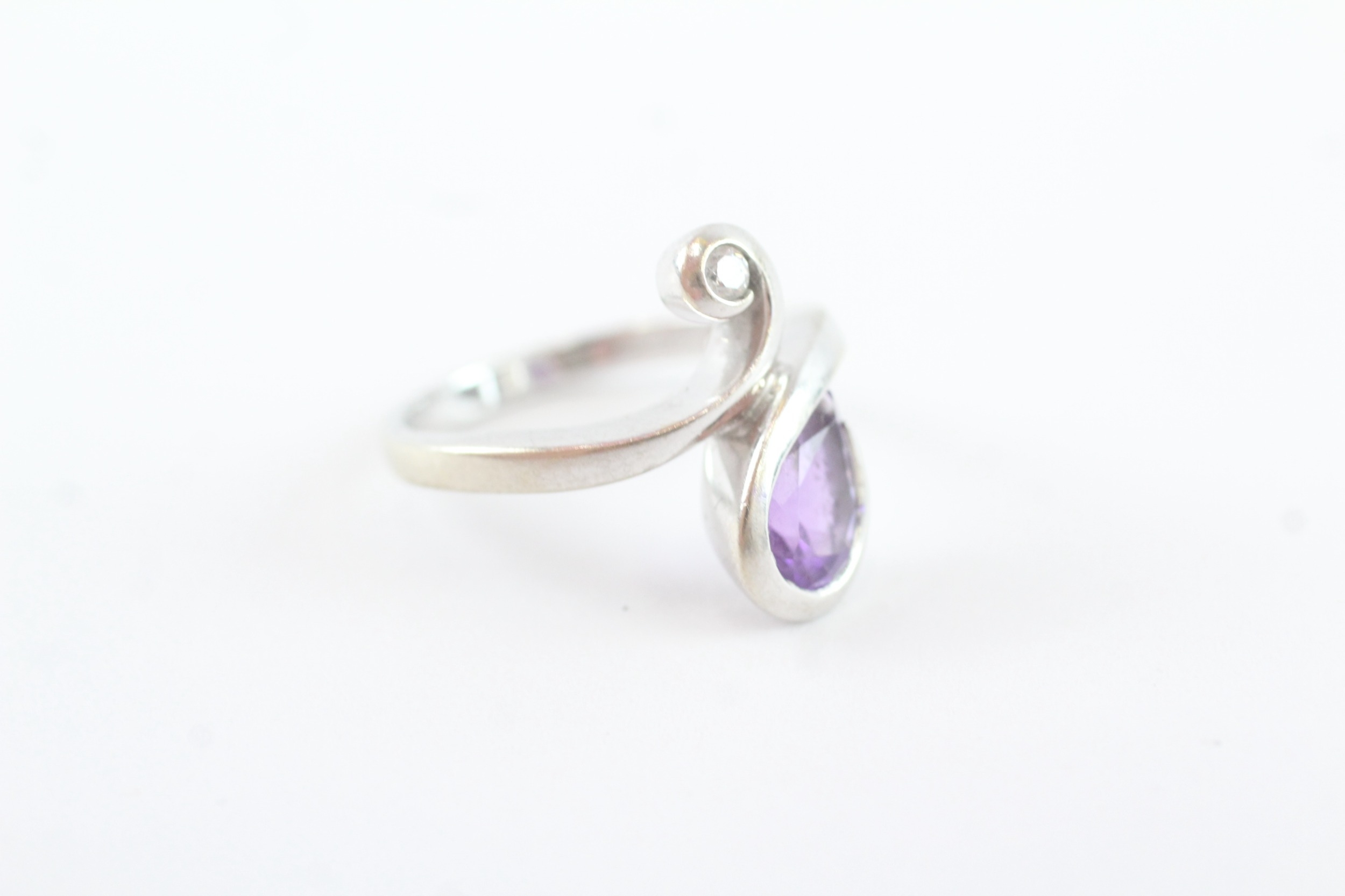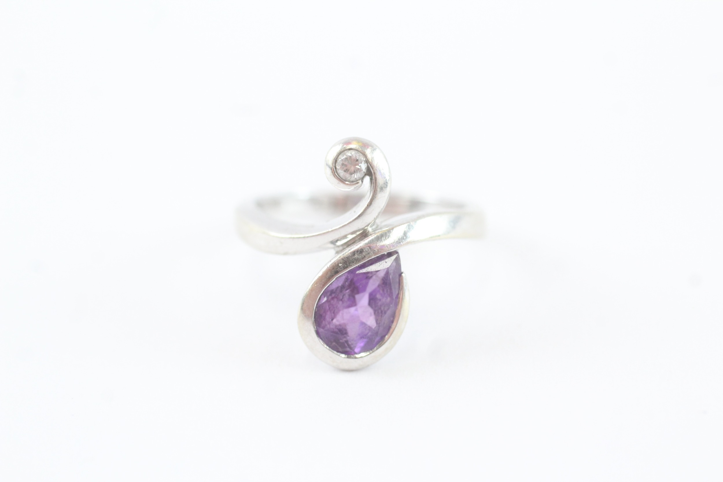 9ct gold pear cut amethyst & diamond dress ring (4g) Size M
