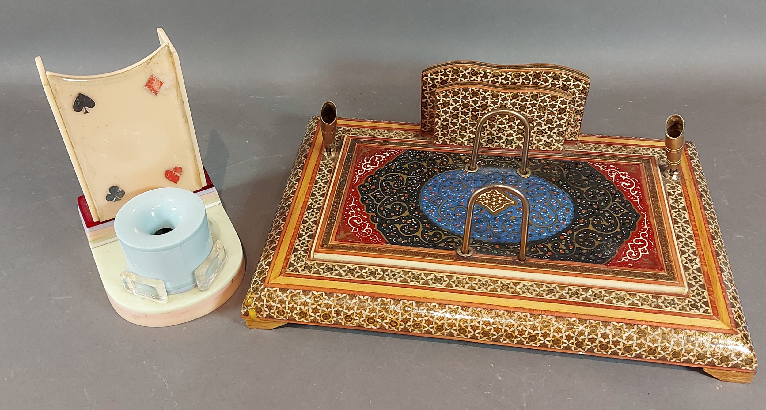 A Persian stationary stand together with an Art Deco bakelite inkwell